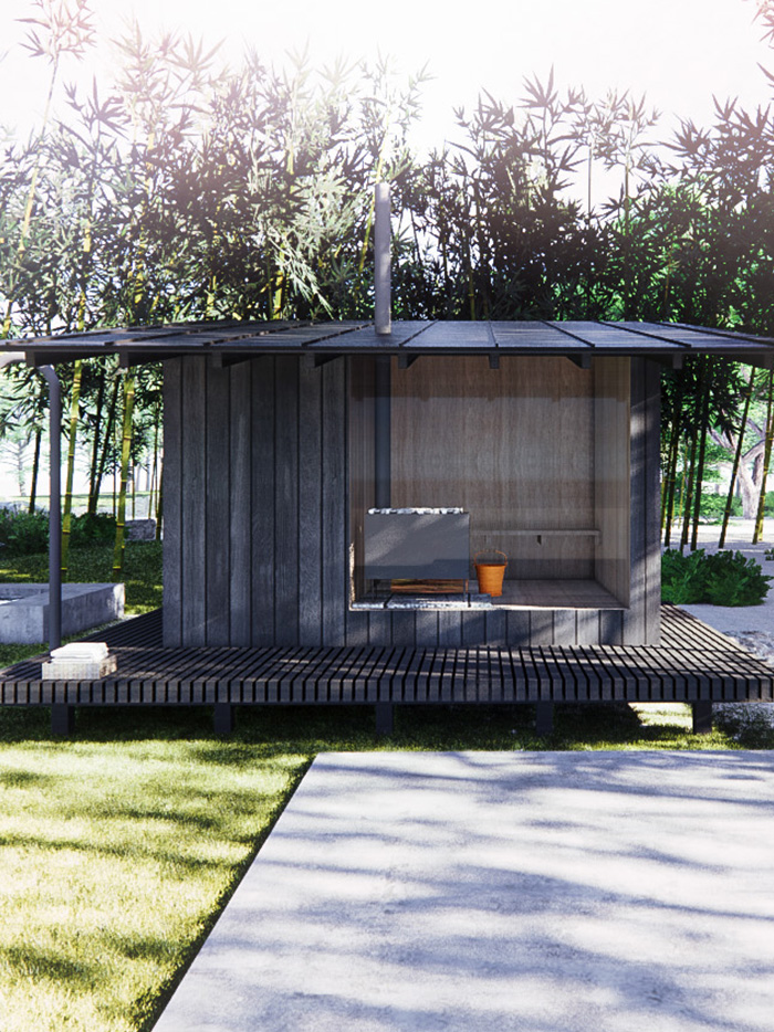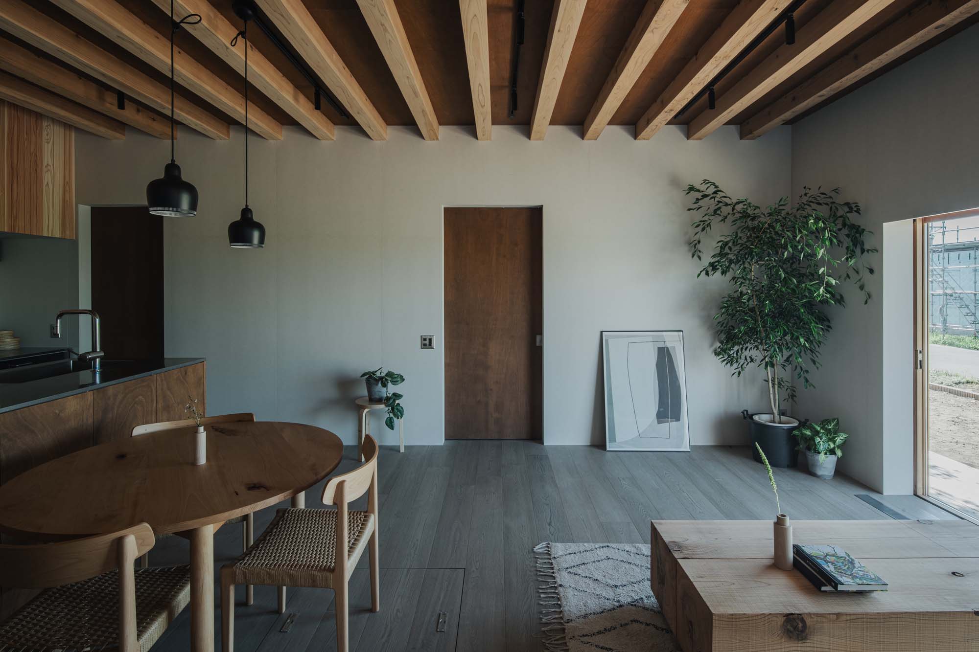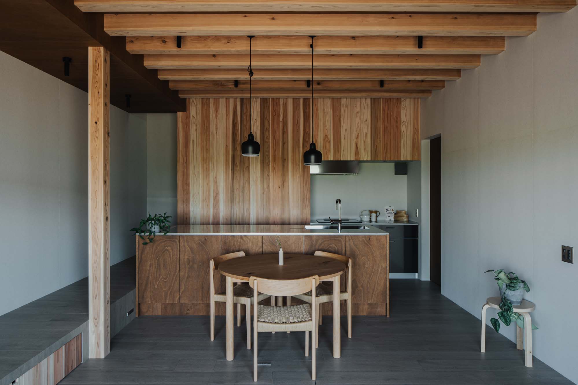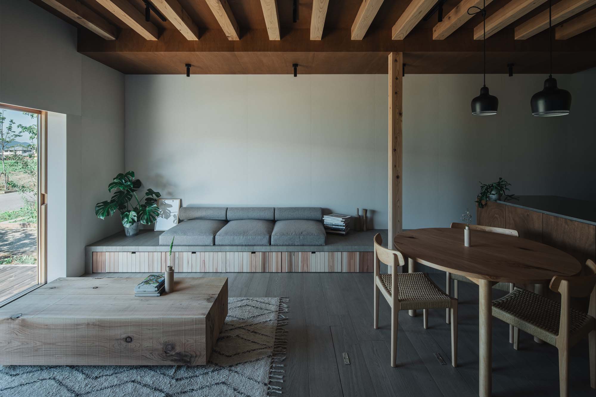自然を感じさせるミニマルなインテリアは既存の木造住宅を踏襲しながら近代的な暮らしへアップデートされた空間。木々の香りを感じながら、住まう人、訪れる人を癒してくれる小屋をかたちに。
