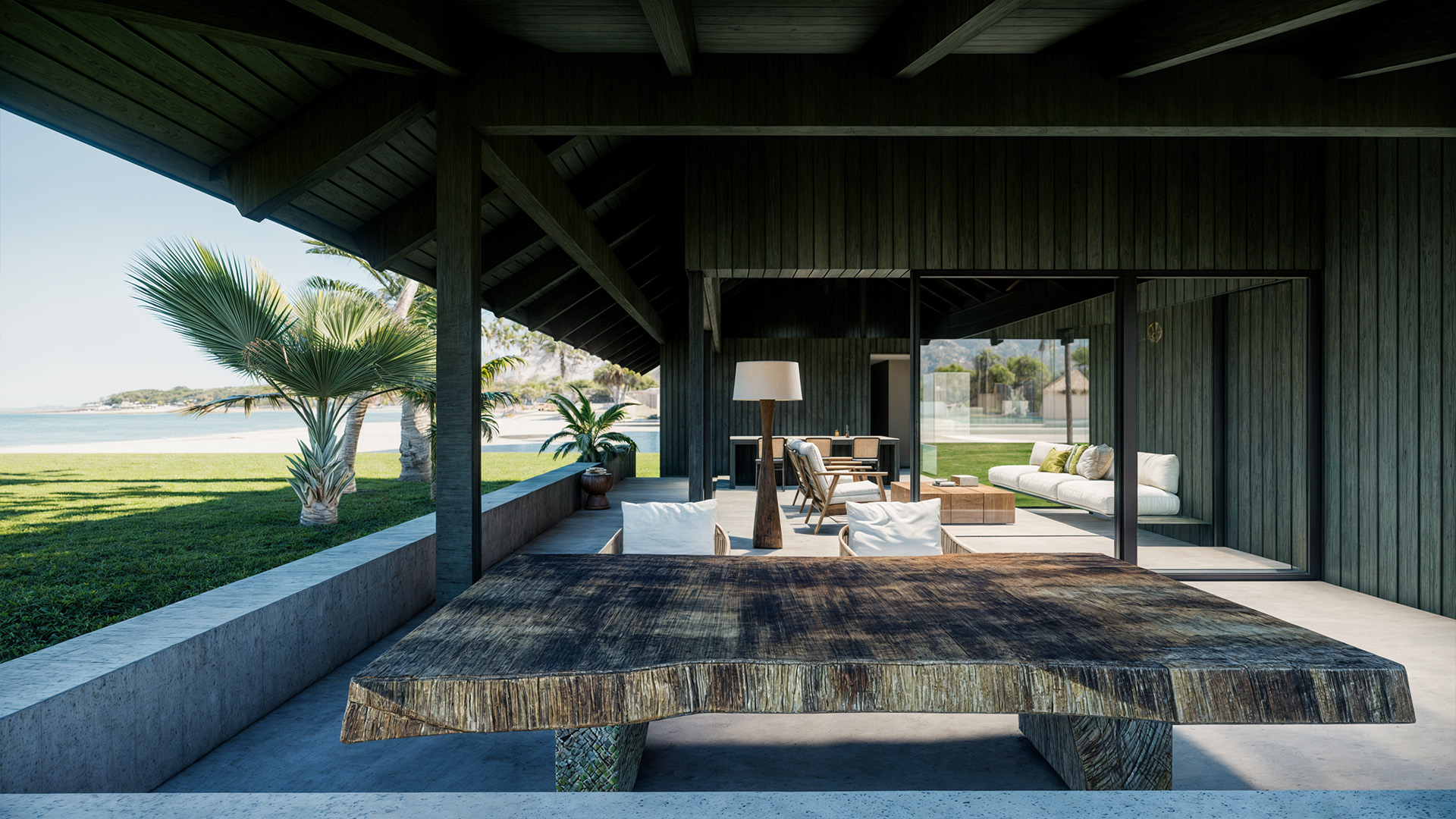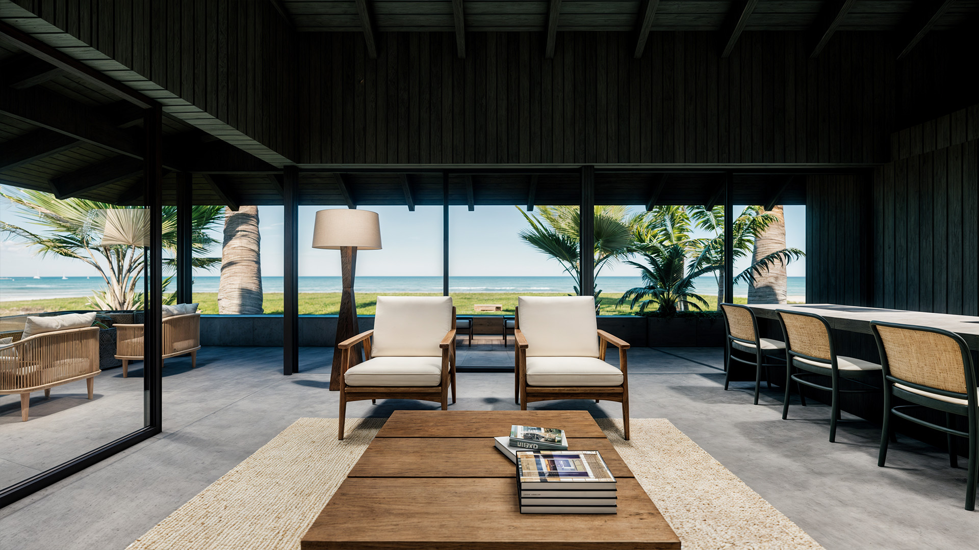 屋内とつながる半屋外空間『ラナイ』は、大型バルコニーとして食事やくつろぎの場に。