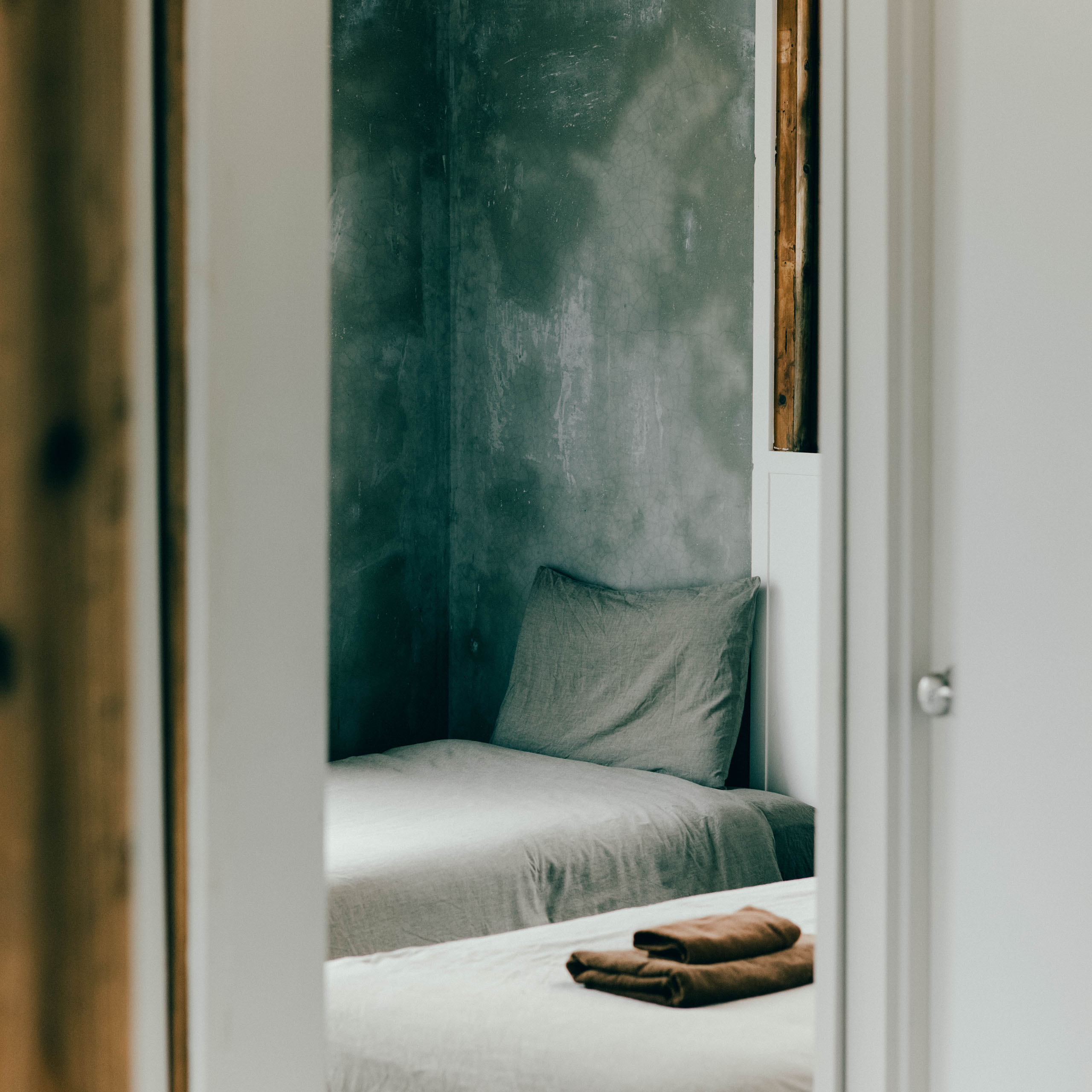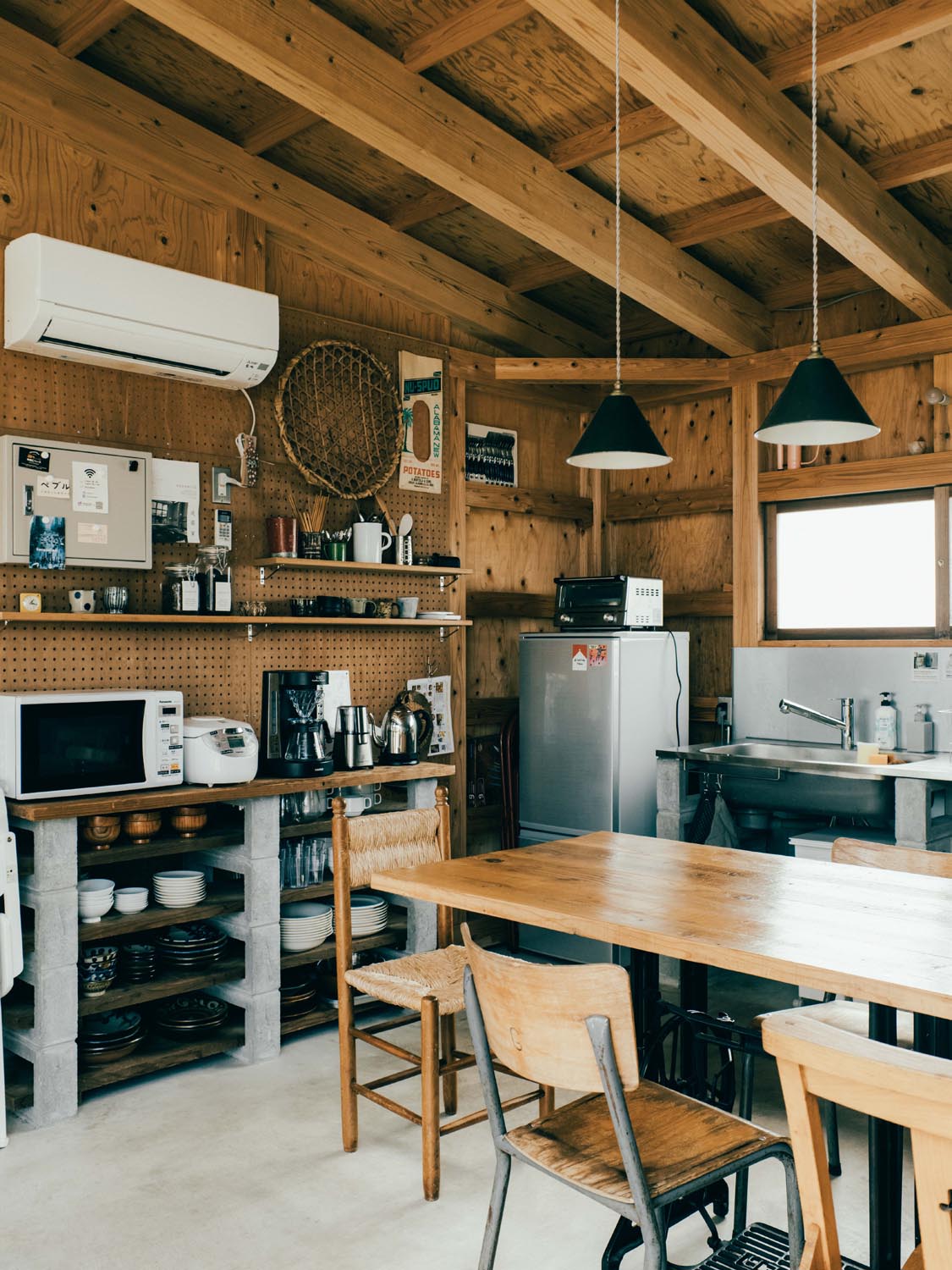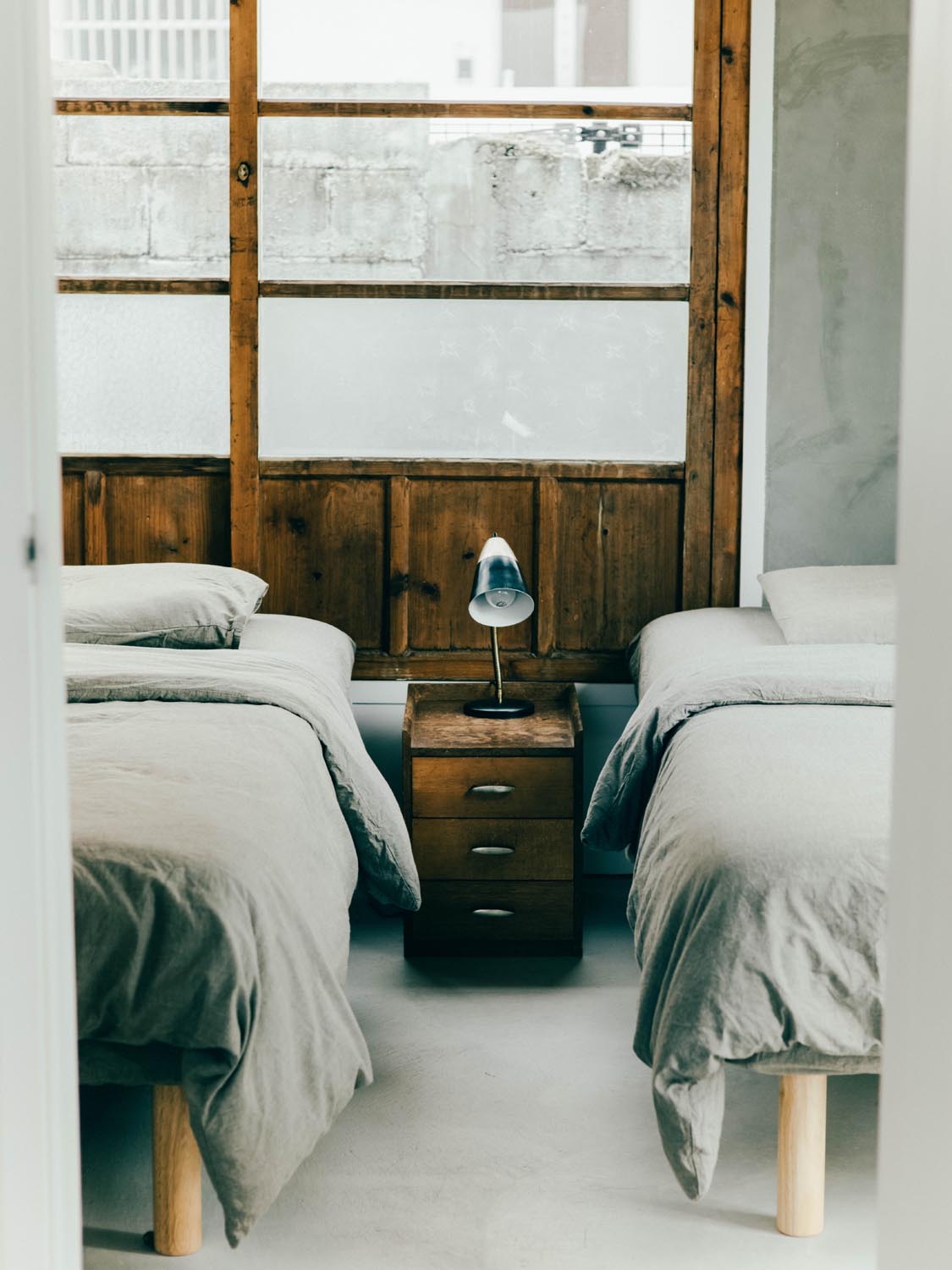 室内にはふた部屋の寝室があり、それぞれにシングルベッドが2台。ゲストが5人を超えるときには、リビングにある小上がりスペースに折りたたみのマットレスを並べて雑魚寝をするもよし。例えば、友人と家族ぐるみの旅行でも、会社の同僚を連れて打ち上げでも、男女の友人との遊びでも、気兼ねなくワイワイできる空間に。どんな組み合わせでも楽しめる間取りには、オーナーの「いろんな人に楽しんでもらいたい」という想いが詰まっています。