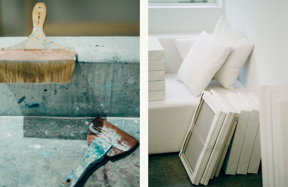 仕事で絵を描いているのですが、部屋に絵は飾りません。自分の作品も、他の方の作品も。だって、絵ってすごいエネルギーでしょ。存在に圧倒される。だから、自分が生活する部屋にあると、そこに引っ張られるというか。同じ家具を長年使っていると、自分の気持ちが更新されないと感じるように、絵を置くことでそこに固執したくない。だから、制作するときは必ずアトリエに向かう。家のすぐそばにアトリエを借りているので、そこが作業現場です。