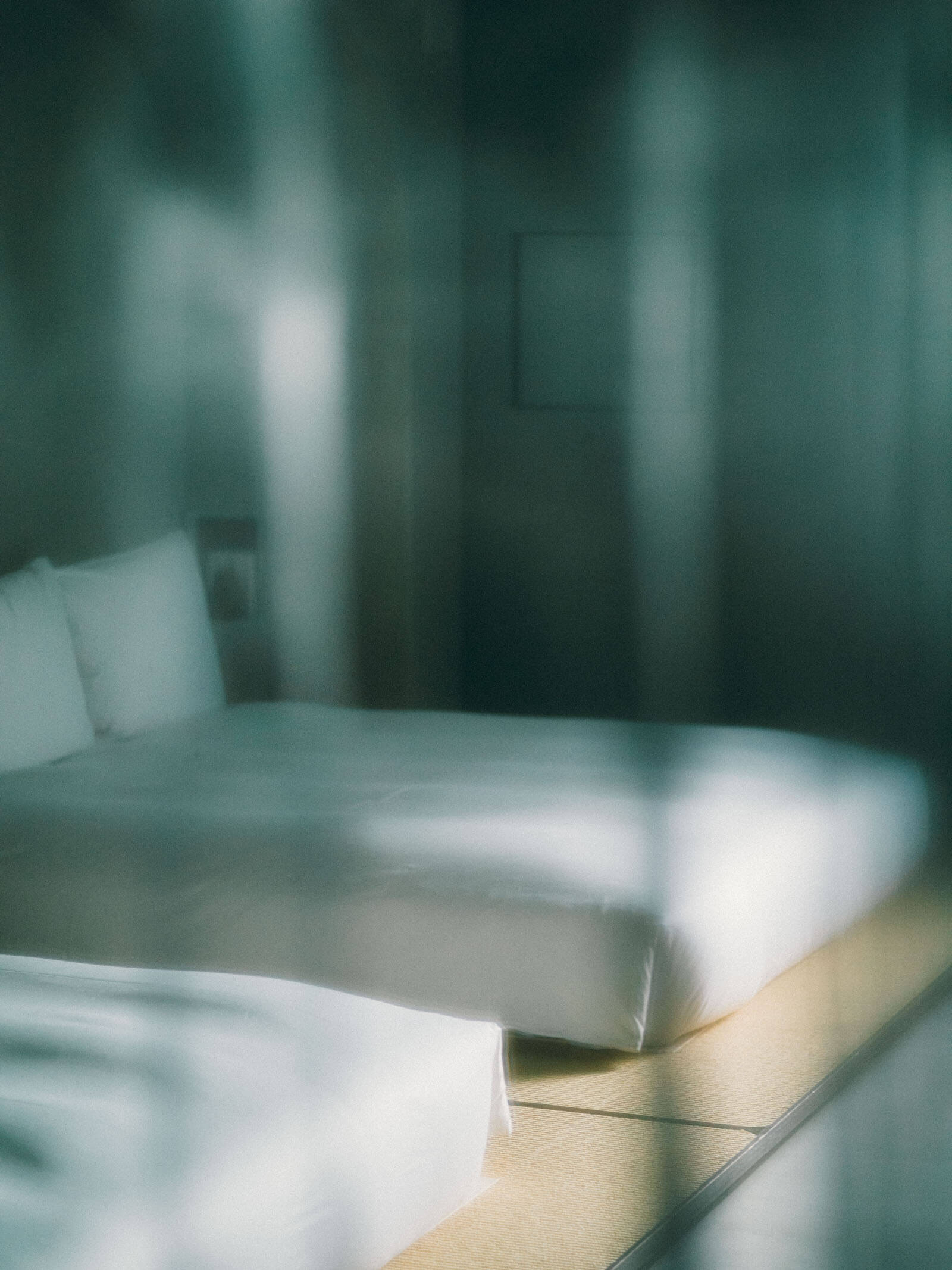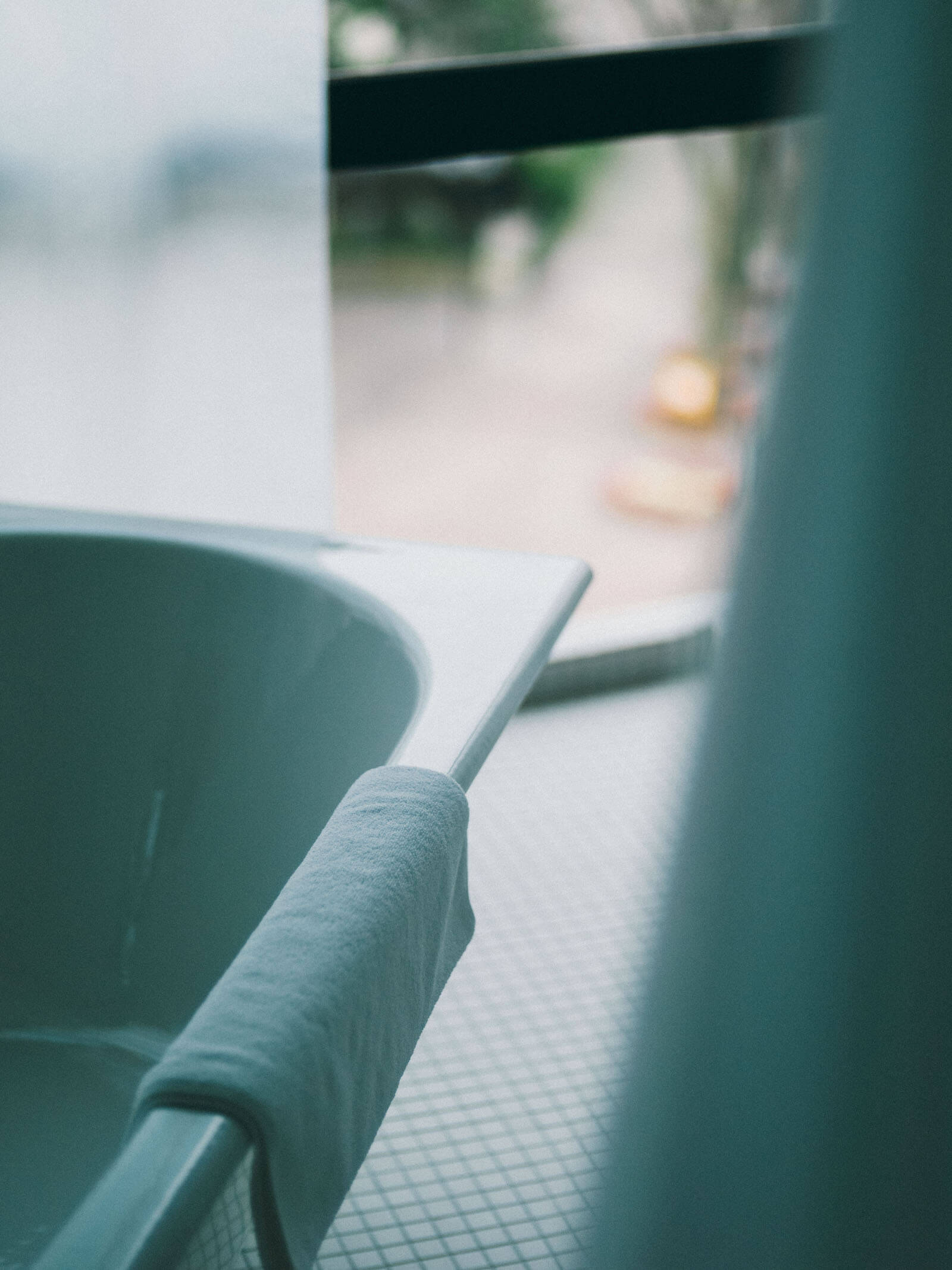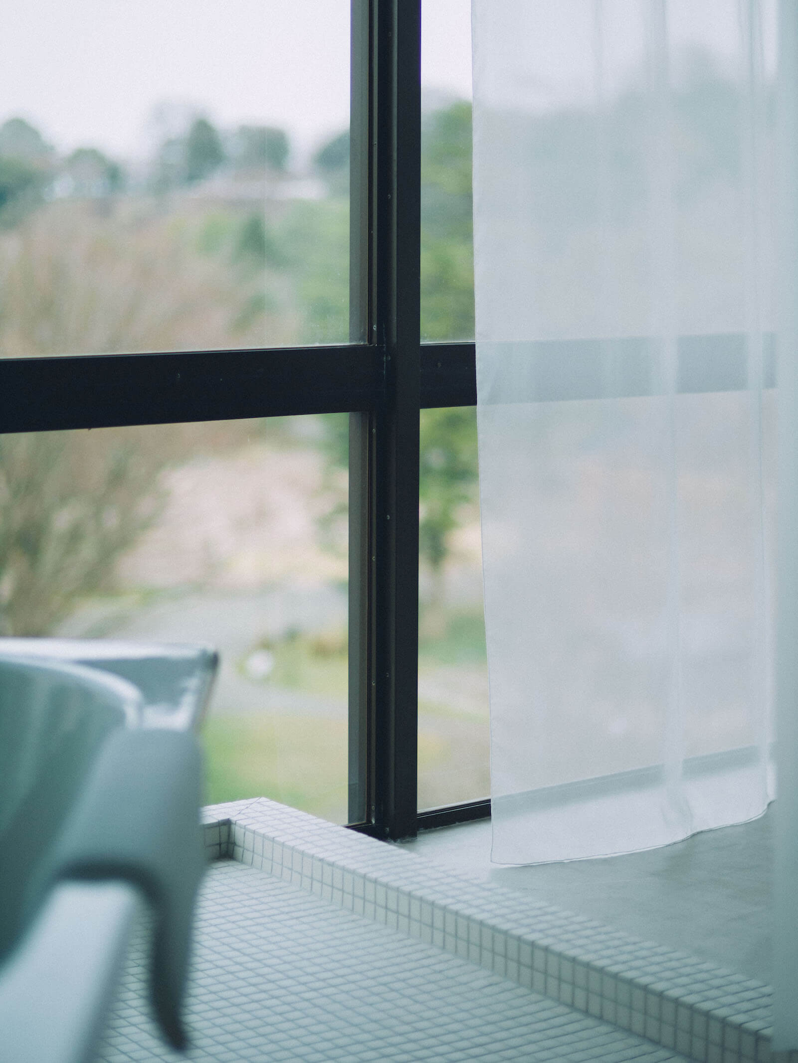 それゆえ、窓の向こうの景色が、絵画のように浮かび上がる。内装の色を削ぎ落としたぶん、外の世界の鮮やかさが引き立つのだ。朝でも夜でも、好天でも曇天でも。訪れるたびに微細に変わる、窓からの金沢の街。この1枚のフレームが、旅の心象風景に不思議なほど残りやすい。部屋の色彩というのは、外界の光を受容するものなのだと学ばせてもらった。