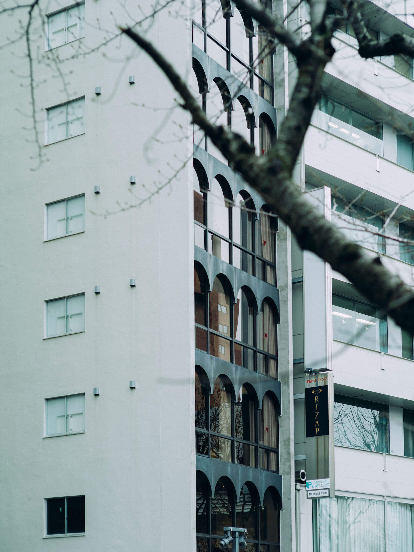 異国のようなホテルの廊下を進んでいくと、至る場所に施された美しい曲線に気づく。九谷焼のルームサインのアーチ、客室ドアのアーチ。部屋に入れば、ベッドの天井も窓もインテリアもアーチ型だ。これらは、前身となる眞美堂ビルの印象的なアーチのファサードからインスピレーションを得たもの。半世紀前の当時、金沢の一等地で金属パネルと大きなガラスで構成された外装のアーチデザインは、どれほど多くの人の目を引いたのか。想像するに容易い。
