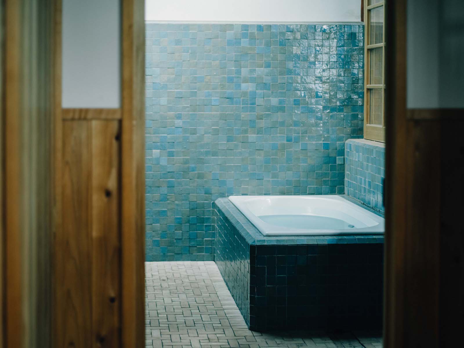 二階に上がると、寝室と浴室が渡り廊下でつながっている。こんなユニークな間取りを見たことがないと伝えると、「これは自分で何パターンもデザインを考えて、大工や職人と一緒に解体工事をしながらアイデアを出し、試行錯誤したものです」と教えてくれた。使って初めて問題点が浮き彫りになるからこそ、改装の着眼点が生まれる。作っては壊し、作っては壊し、その連続だったそう。