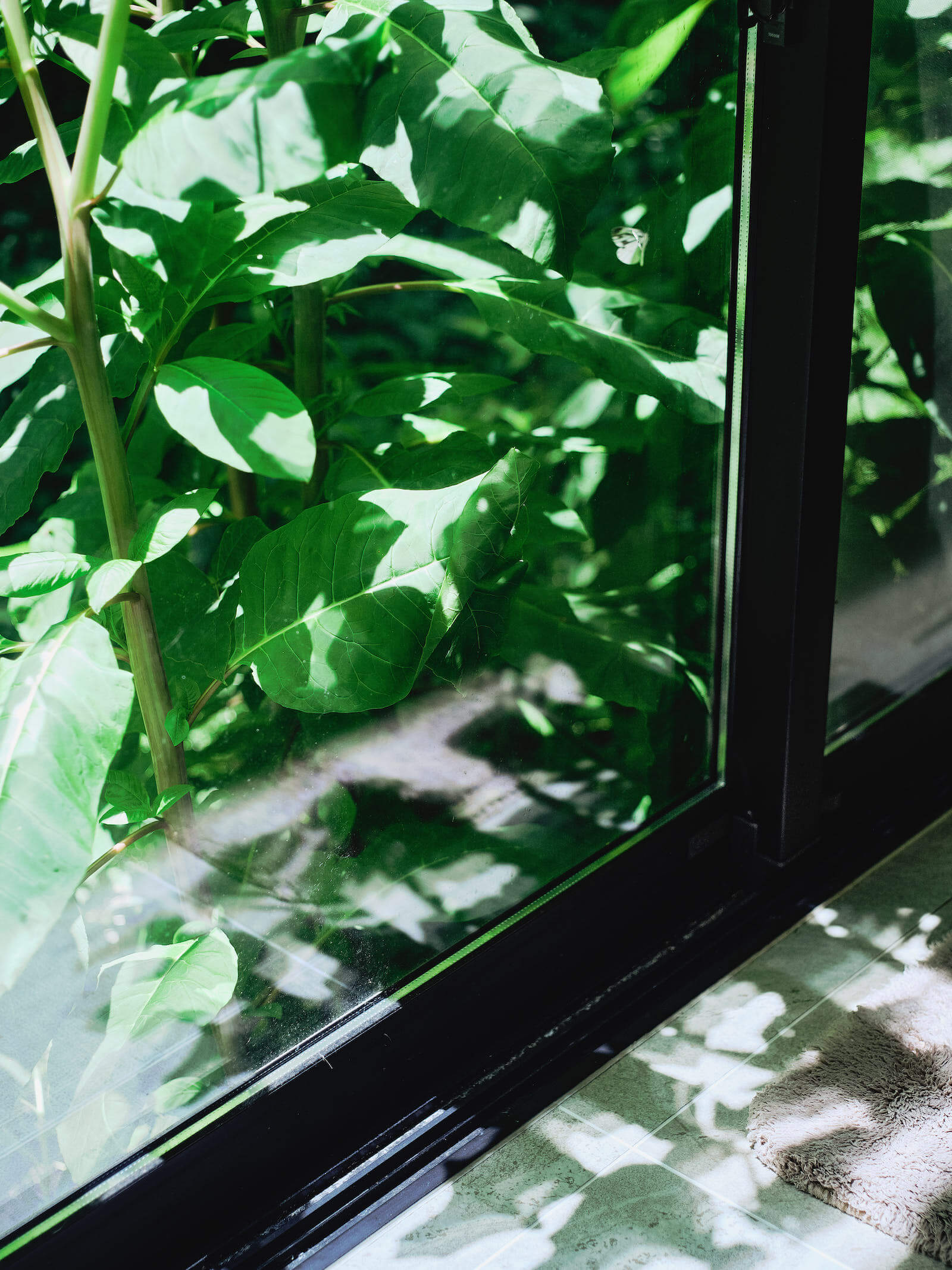 額縁のように切り取られた窓の向こうの自然や、床に映り込む風に揺れる植物の影。その美しさはしばし時を忘れて眺めてしまうほど。酒井さんのご自宅は美しい景色に溢れていた。話を聞いて意外だったのが、この空間には彼女がこれまで見てきた世界中の建築やインテリアのかなり細部のアイデアをも取り入れられていること。センス=インプット。酒井さんのご自宅と考え方から“美しさを分析すること”の大切さを学ばせていただいた。