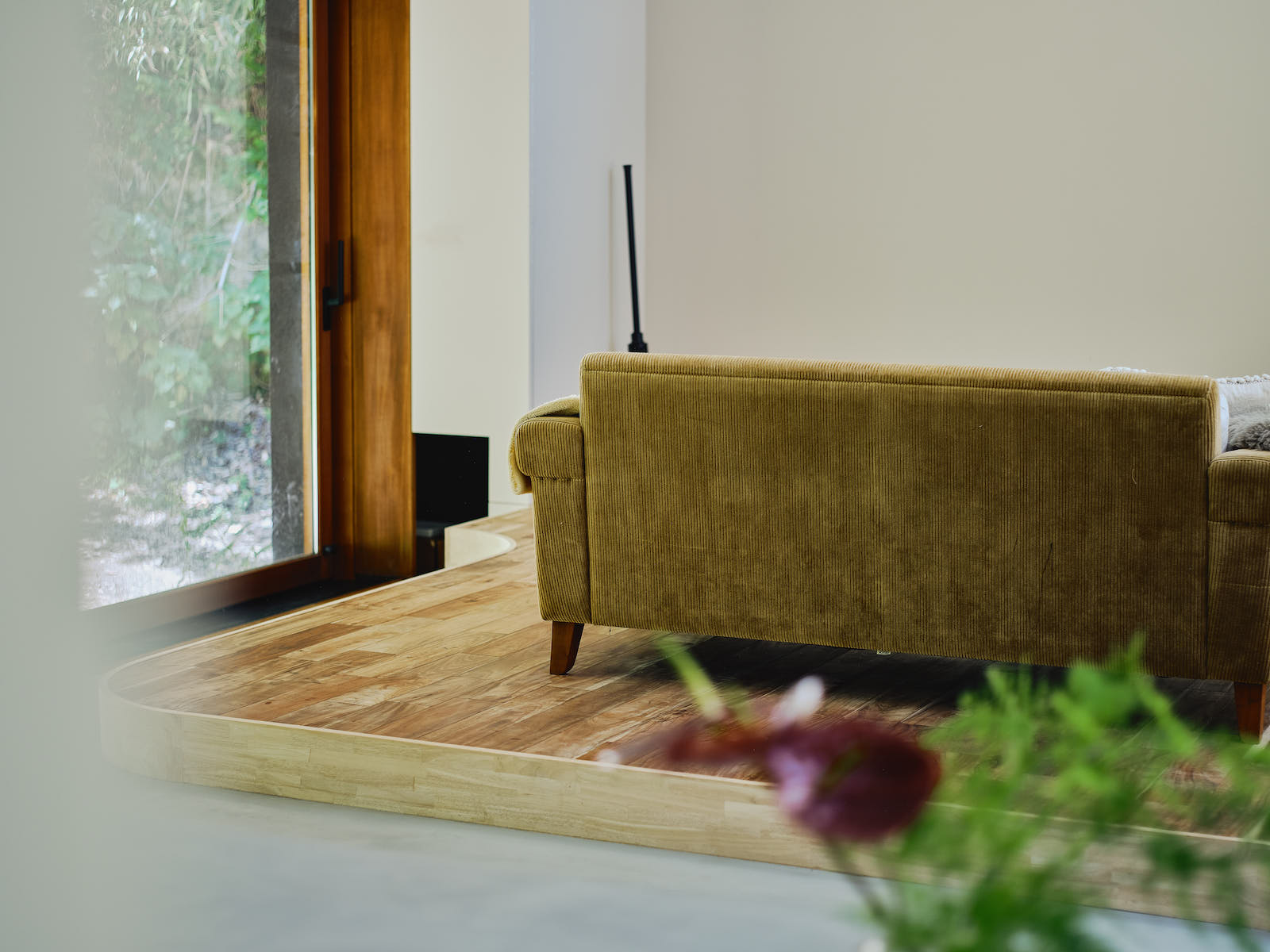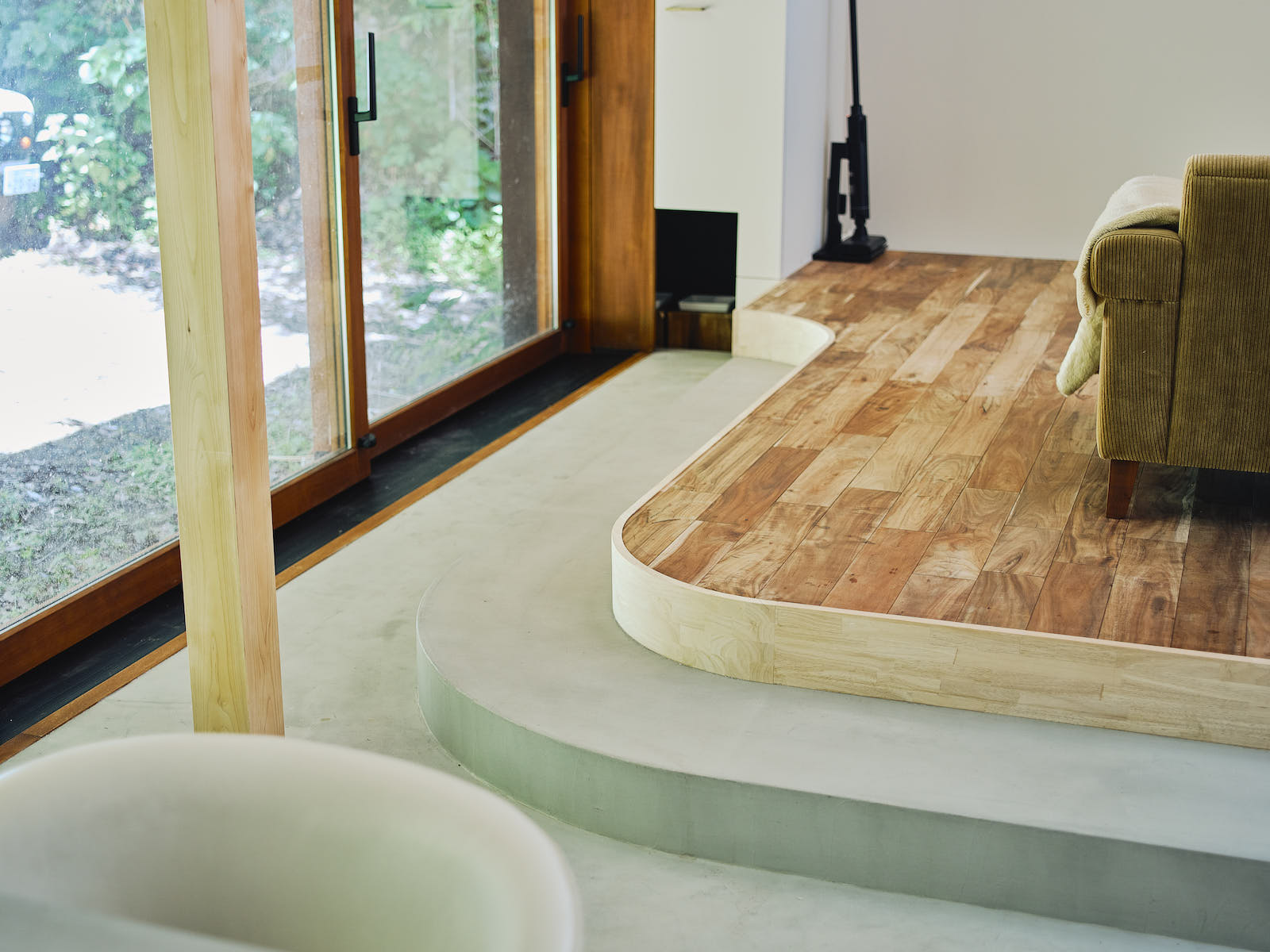 海と山が身近にある生活。今後の楽しみ方を伺うと「庭の開拓」という言葉がすぐに返ってきた。アウトドアリビングとしてモルタルのテラスを庭に設け、リビングからの床とつなげるのが理想。そこで、自然と住まいの境界線はもっとなくなるはずだと話す。