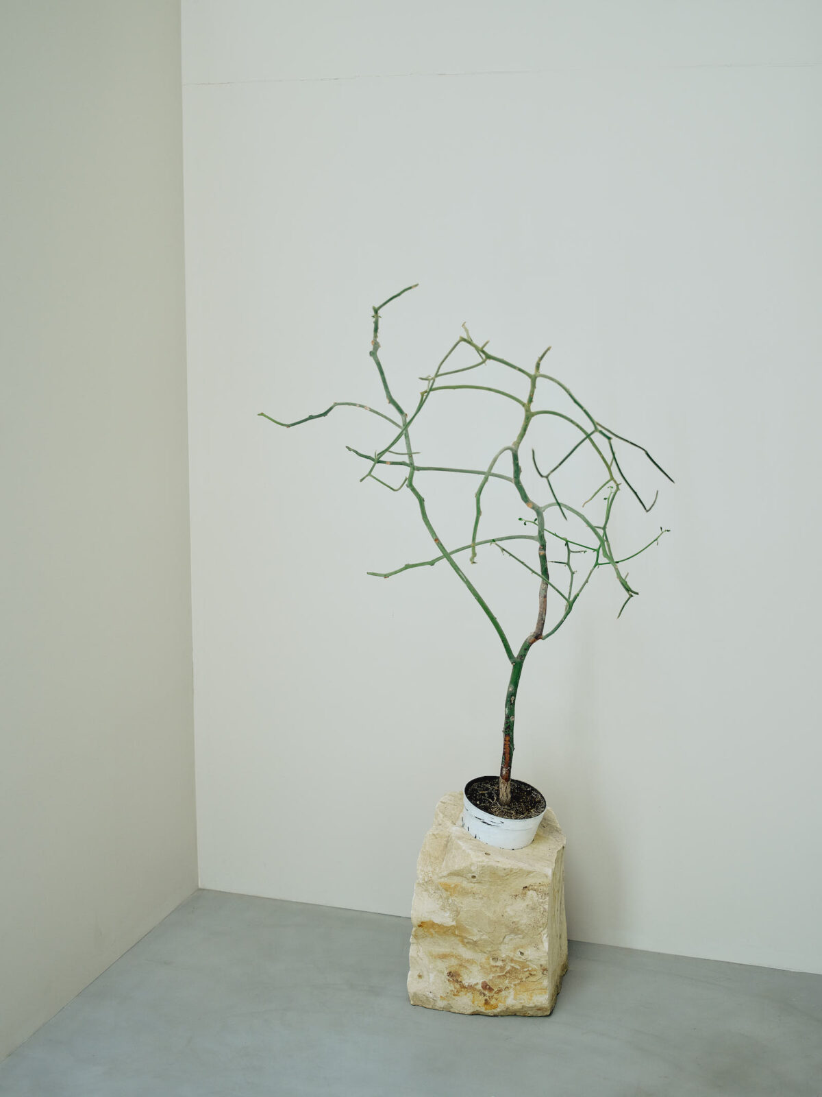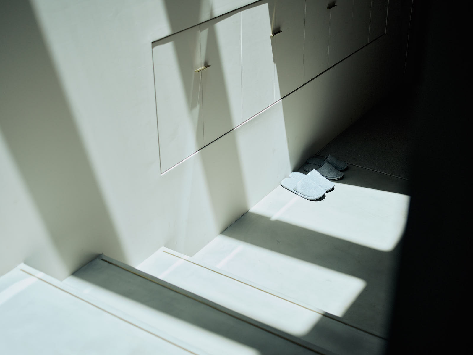 階段の先に置かれた植物の佇まいはとても詩的で、まるで1枚の絵のよう。平面と奥行きの使い方が絶妙なバランスなのだ。