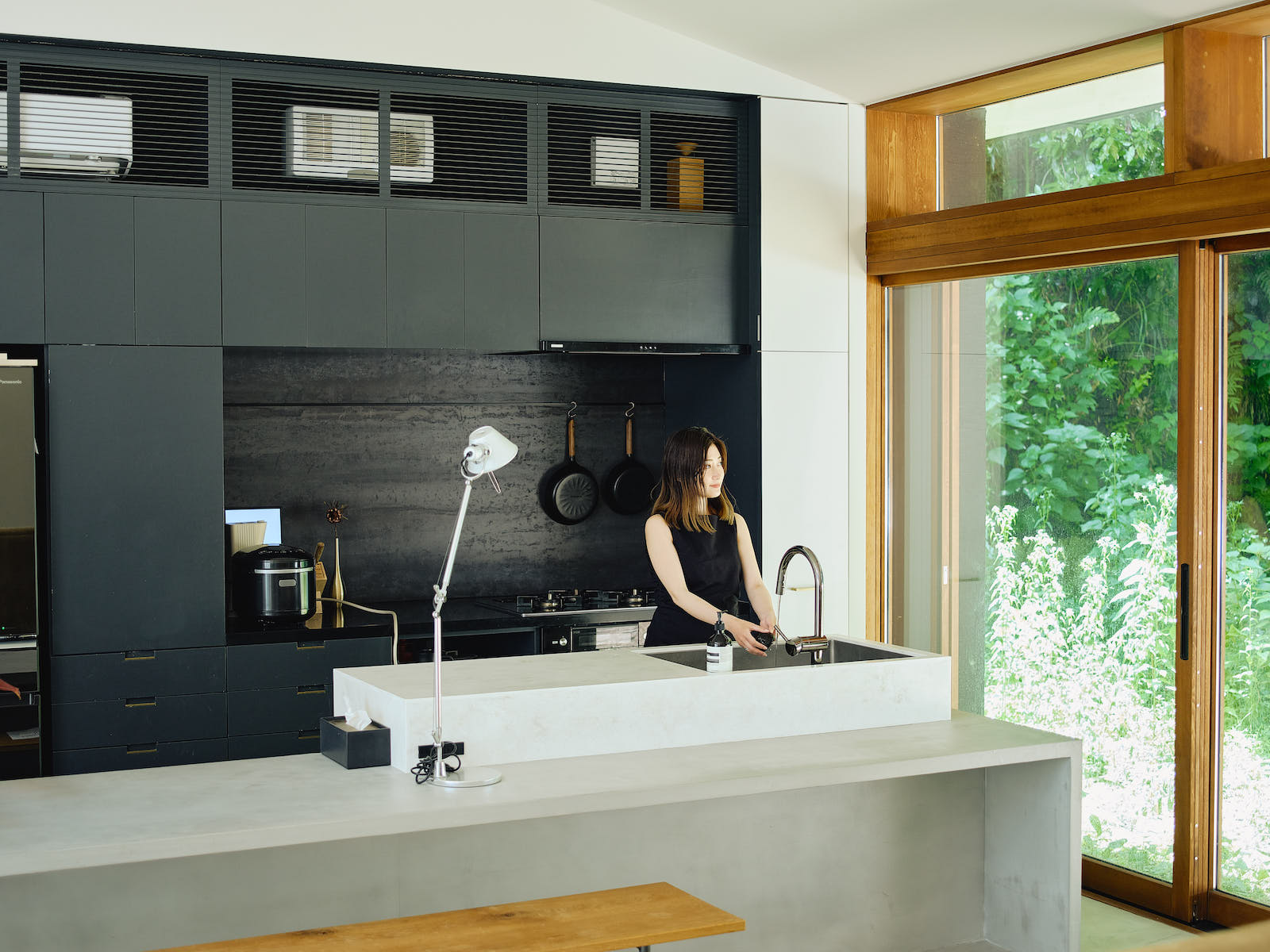 鎌倉の自然に囲まれた山の手に新居を構えたデザイナーの酒井景都さん。昔から世界のさまざまな住居やホテルのインテリアを見るのが好きで、今回の家づくりのアイデアはそんな長年の趣味の集大成だ。家で過ごしていても、緑豊かな自然と繋がれる住まいを目指して、構想から着工まで長い時間をかけて作り上げた新居を訪ねた。