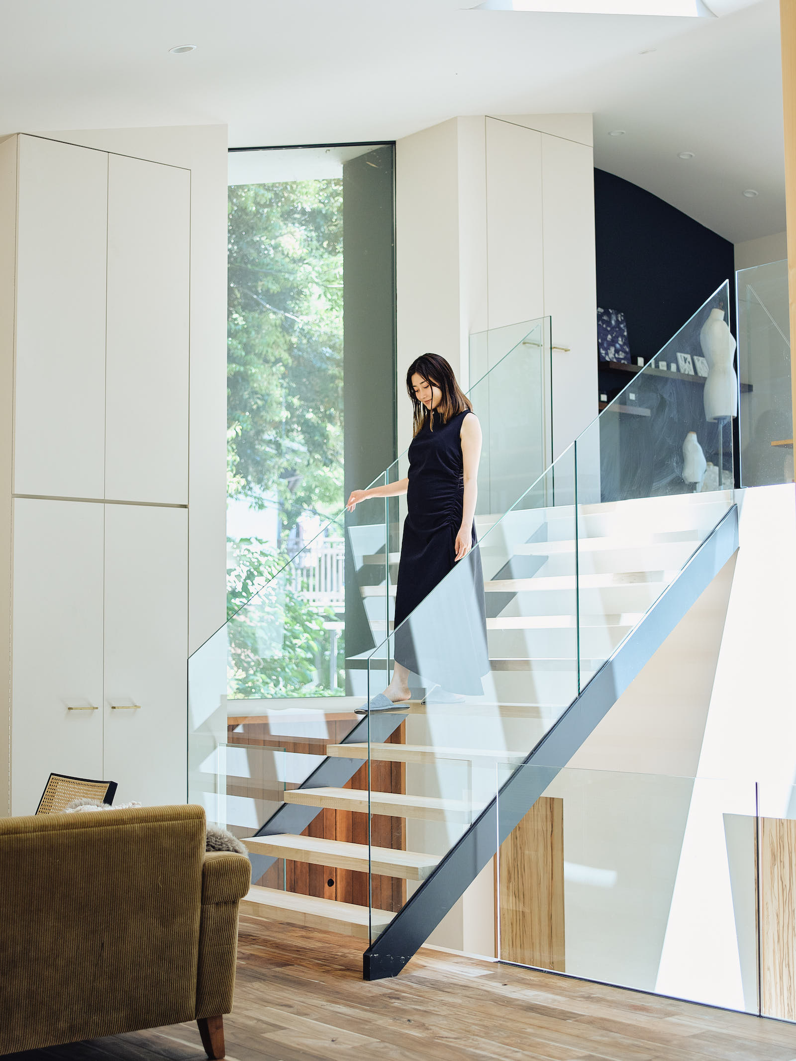 ガラスの手すりを持って階段を降りてくる姿も、まるでどこかの物語。階段さえ単なる通路ではなく、それぞれのスポットが洗練された1つの空間として成り立っている。