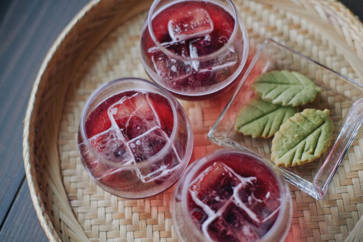 ウェルカムドリンクは近隣で採れたブルーベリーを炭酸で割ったもの。果肉がそのまま入っていて、丸ごと食べたくなる。