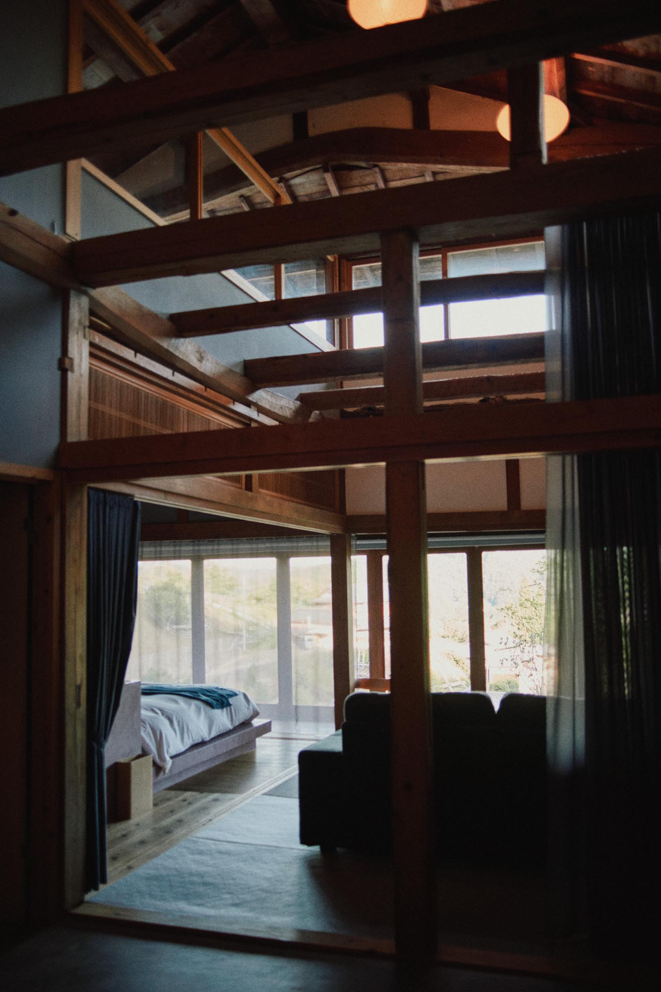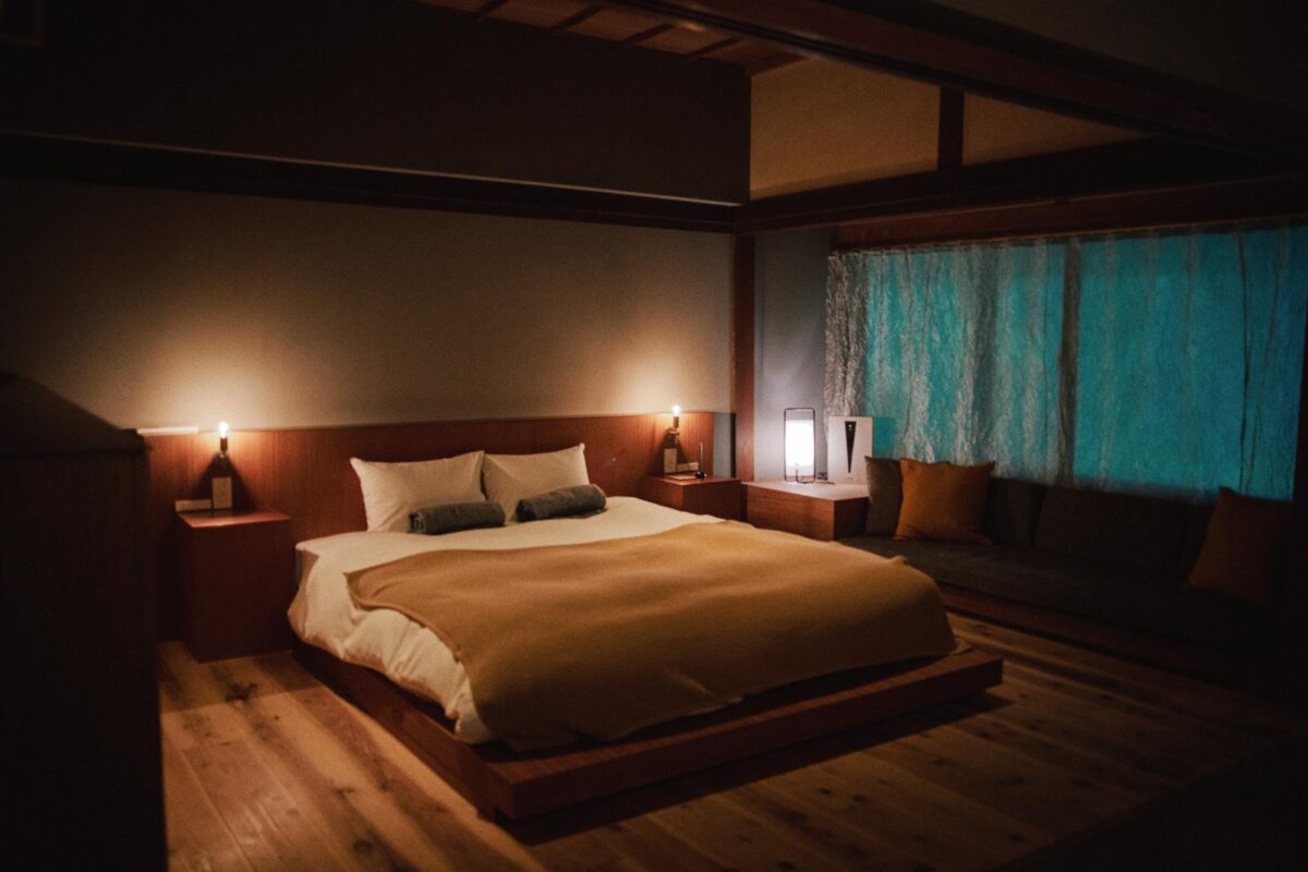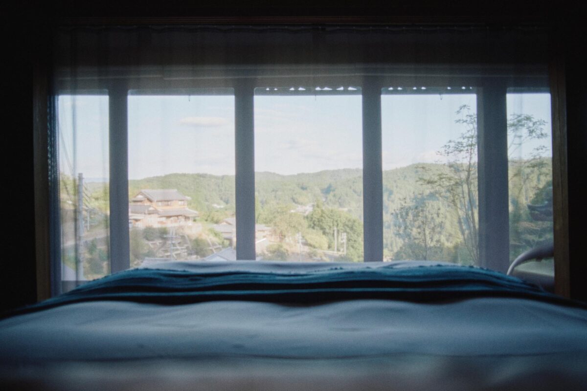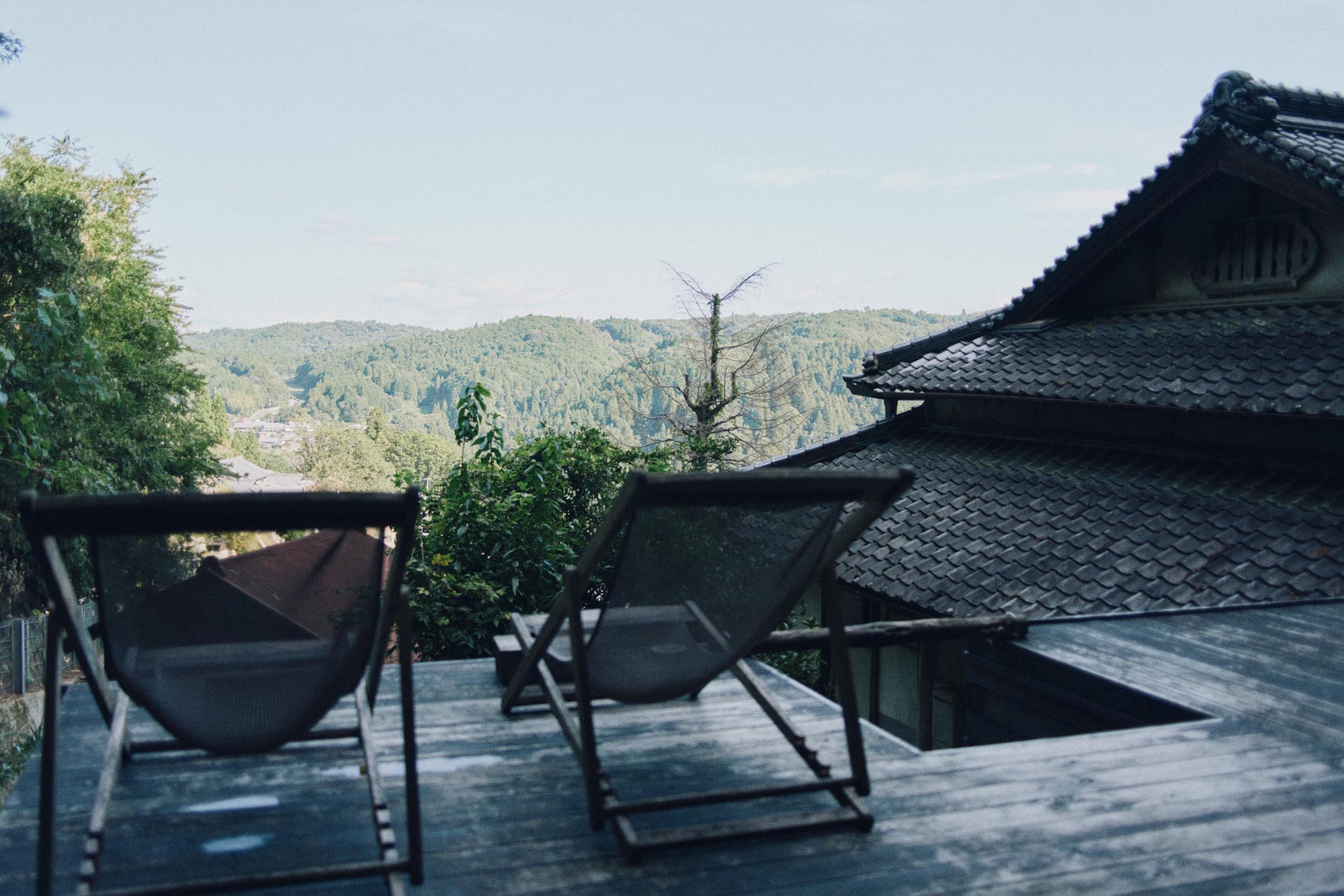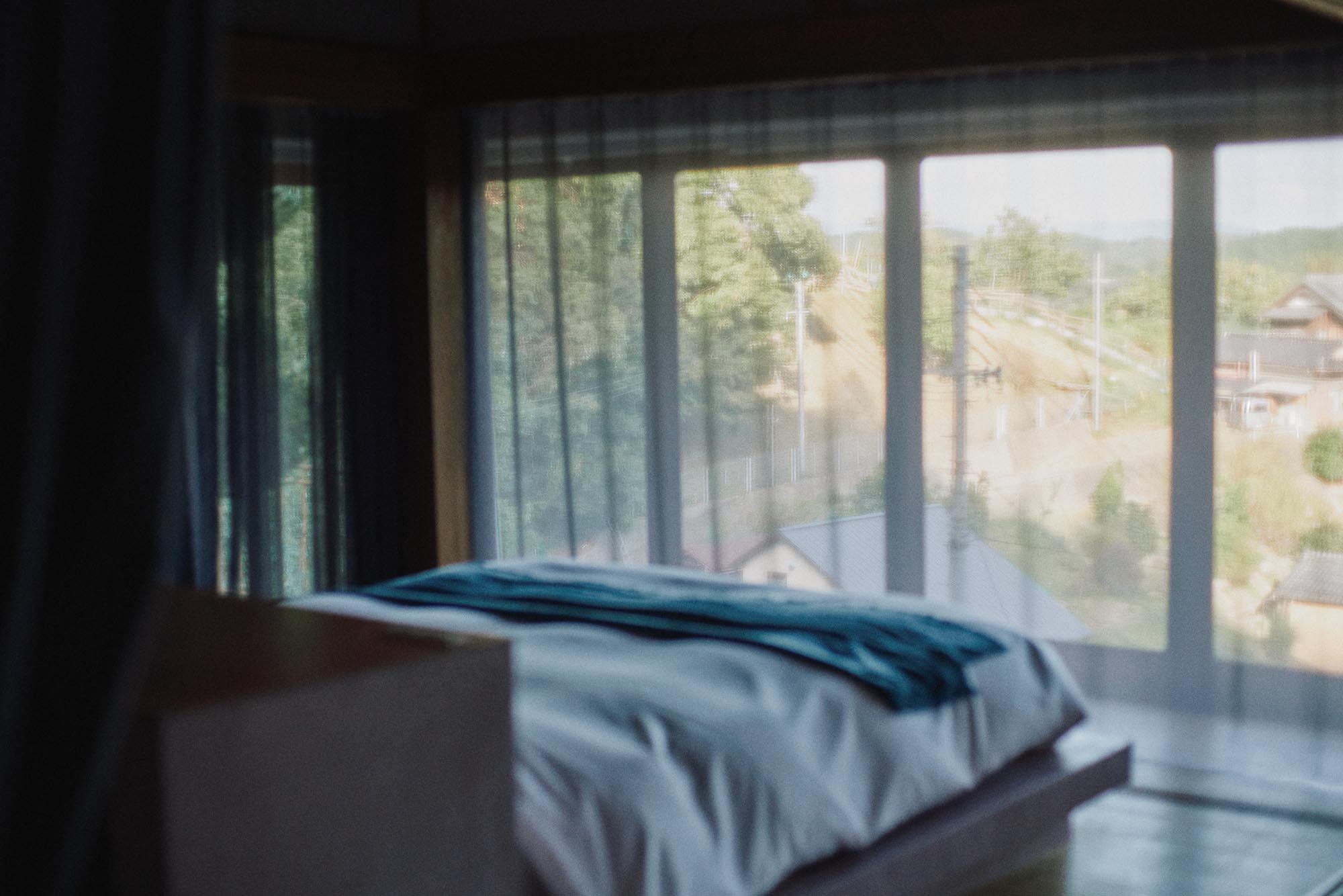 この離れは村を見下ろせる高台にあるため、宿では客室の眼下に山添村が広がる。日中は太陽の運行がはっきりとわかり、夜になると眠りに落ちるその瞬間まで、冴え渡る星が目の端に映る。