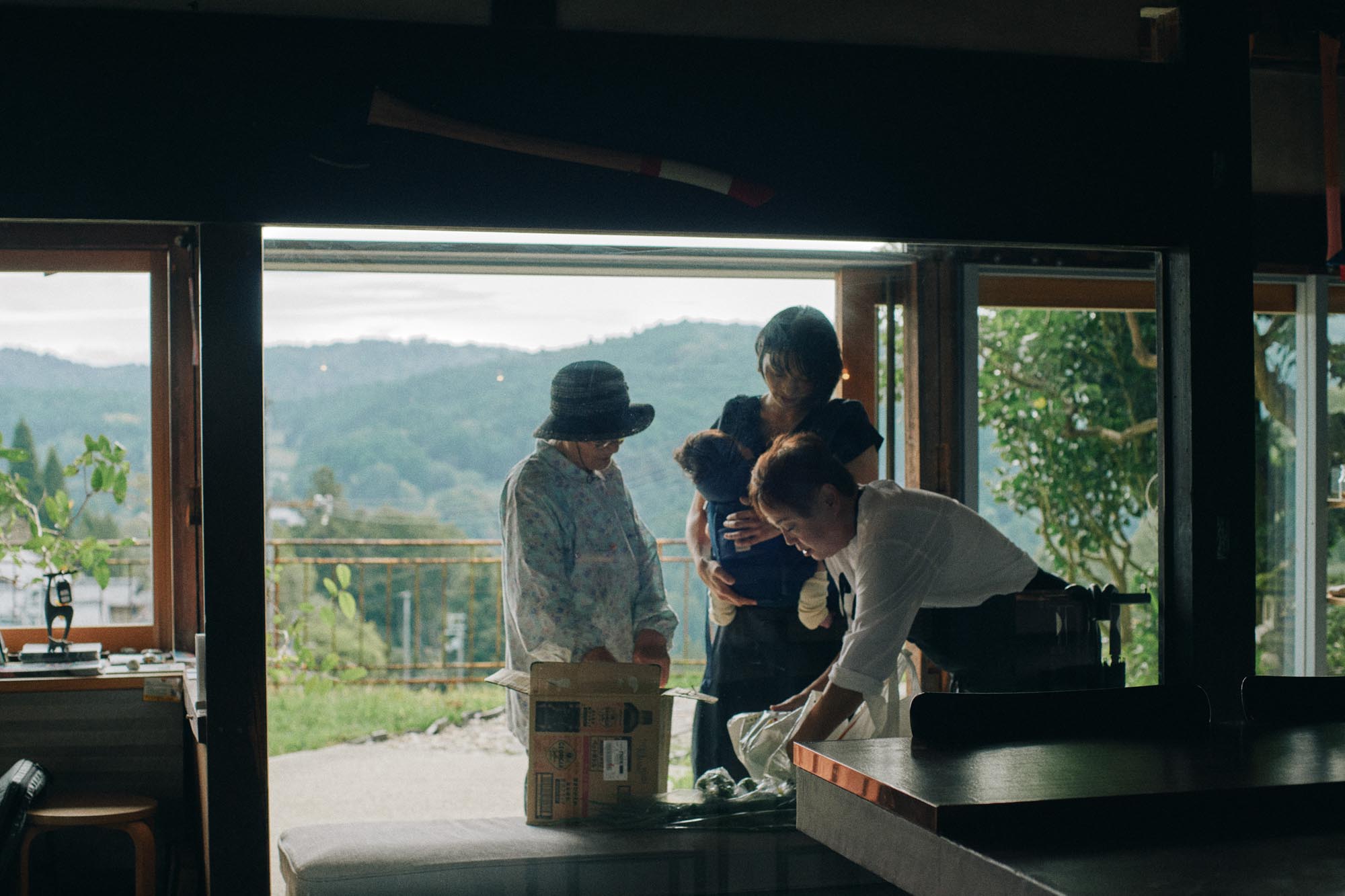 滞在中、里のお年寄りが食材を届ける様子を見かけた。自分の近況報告をしたり、梅守さんがお年寄りから何かを教わったり、楽しげな会話が続いている。