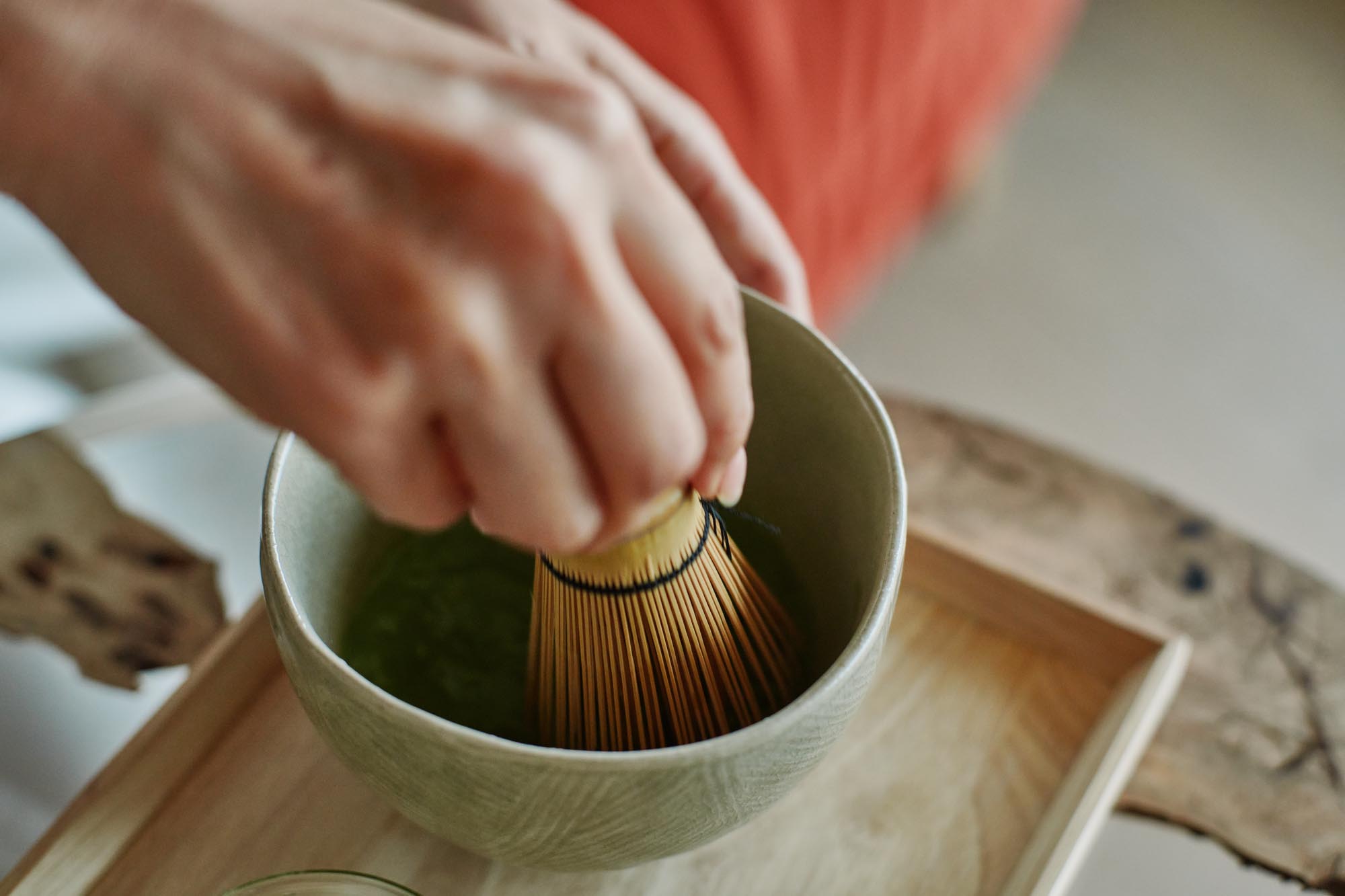 ときにはオリーブの粉末でお茶を点てて、海の景色とともにゆったりした時間の流れを味わうのも醍醐味。