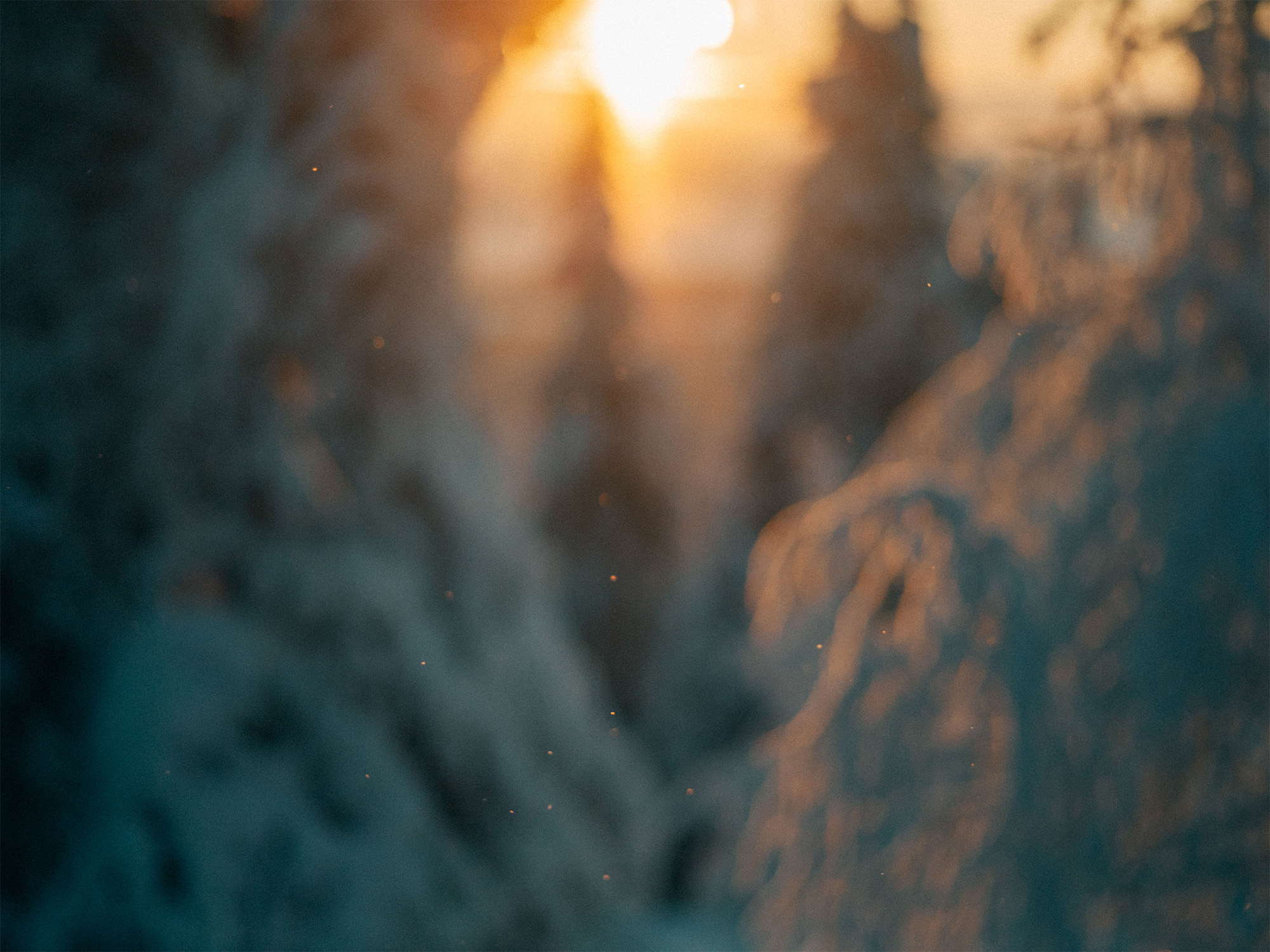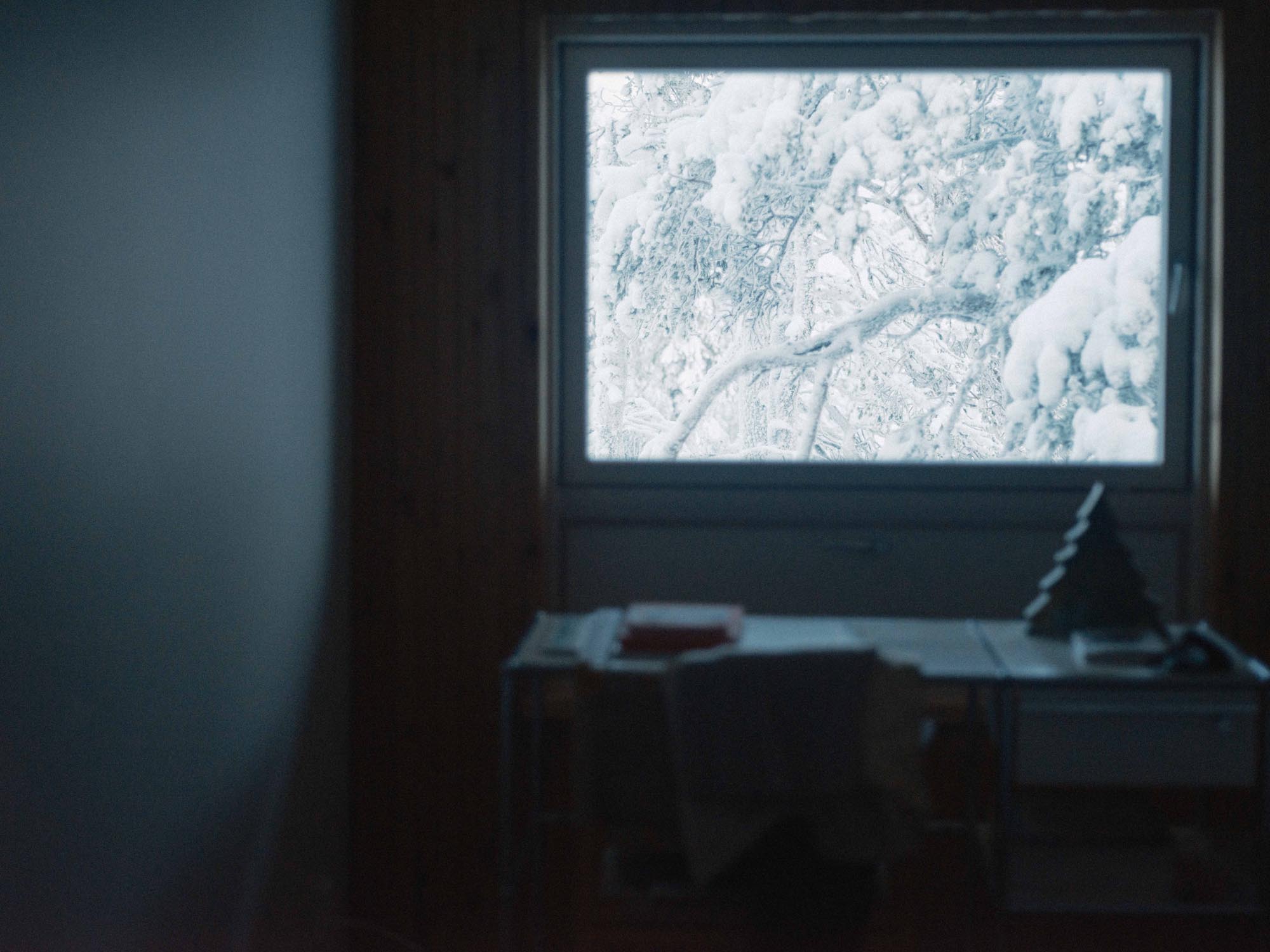 雪に覆われた木々から顔を覗かせる建物は、遠い過去から現在に続く、人間の原始的な営みを思い出させてくれます」
