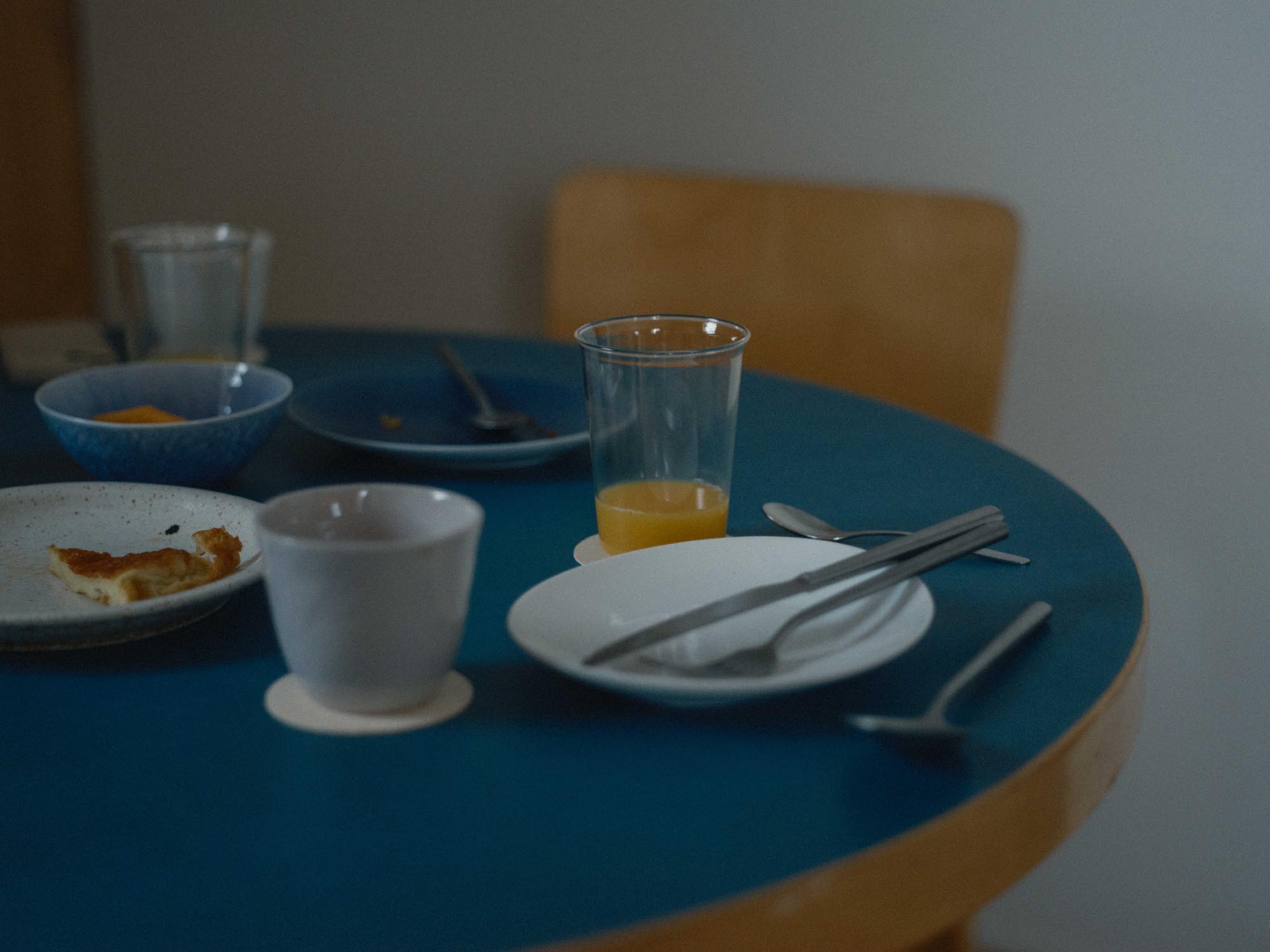 とりわけ「GAGGENAU」のビルトインオーブンが備わったキッチンで自炊する時間が心地よかった。スーパーで食材を購入し、キッチンで調理する。出来上がった料理は「Artek」のテーブルでいただく。