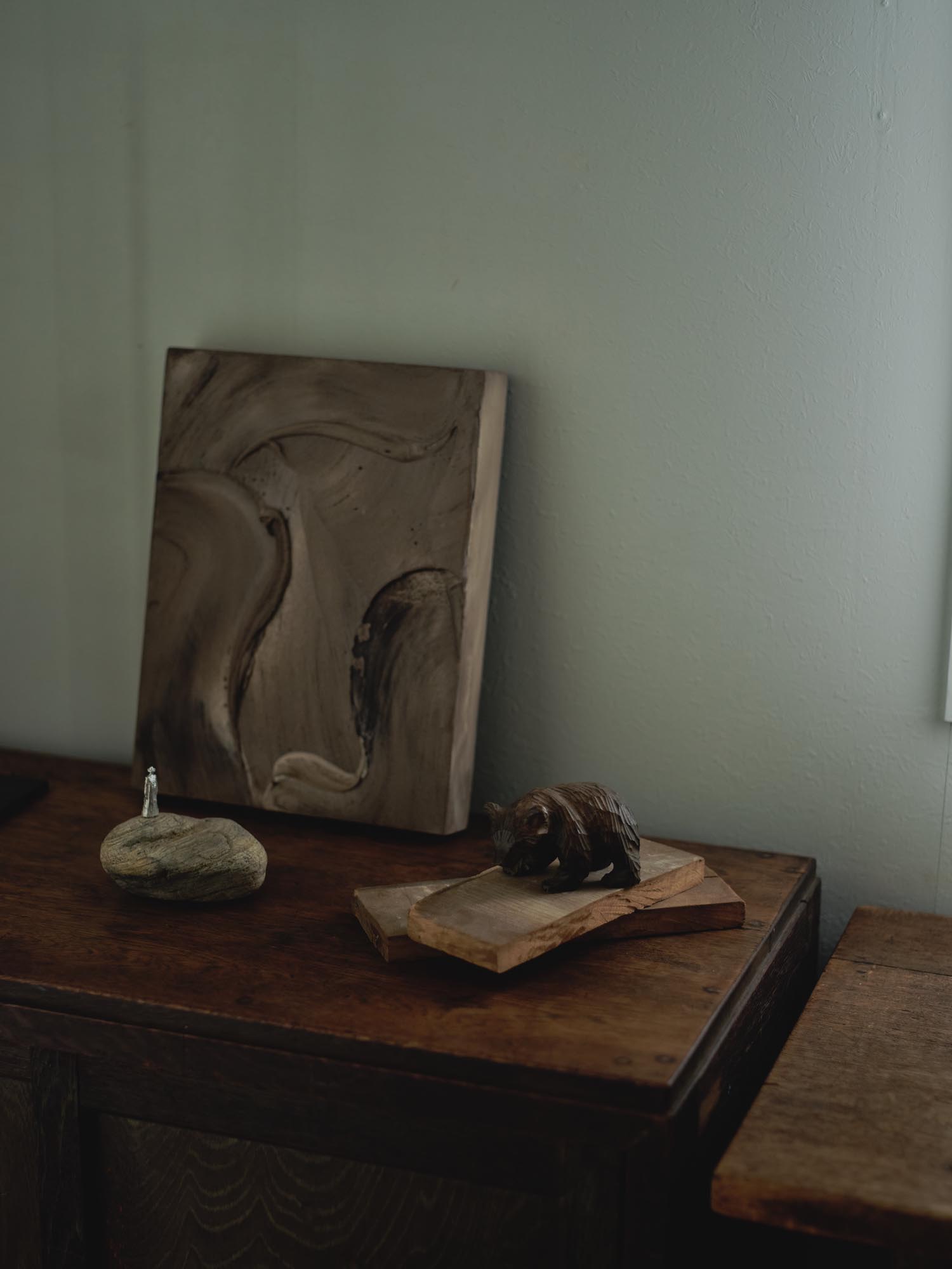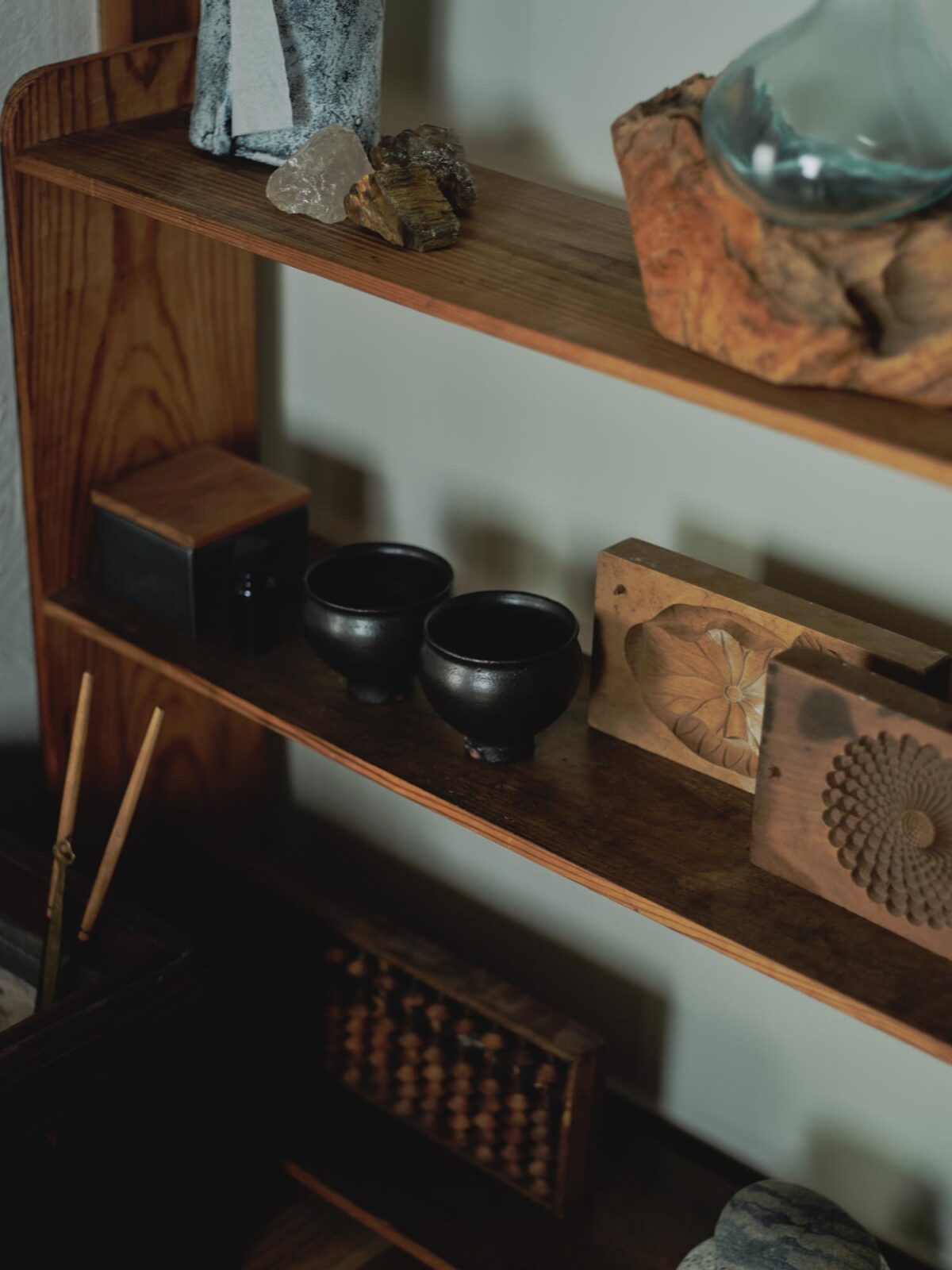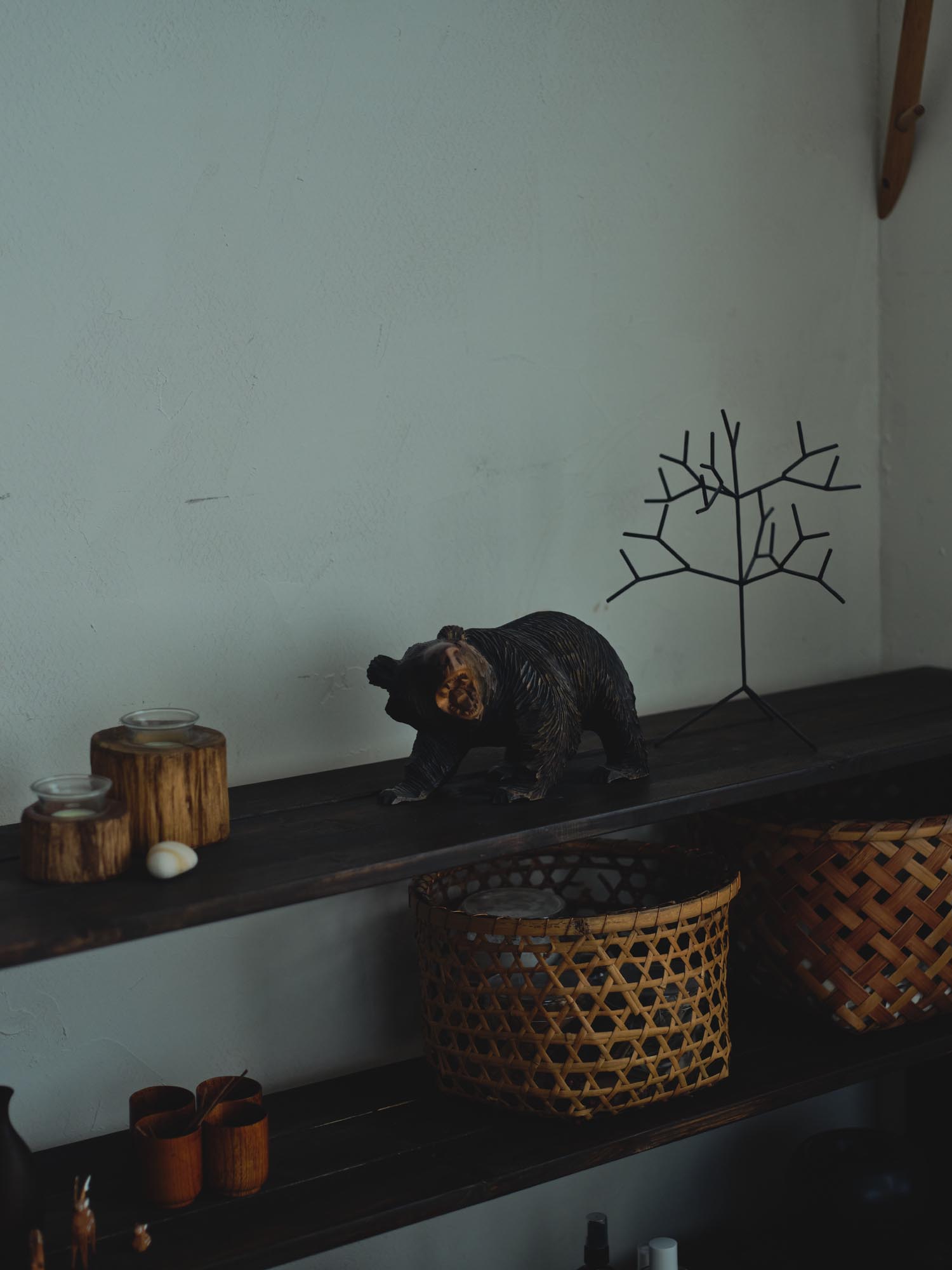 そうして作り上げた空間には、小物に至るまで茉夕さんの美意識が行き渡っている。名前に由来する鹿と熊のオブジェ、時間の流れに区切りをつけるために焚くお香、質感や色合いの調和──目に入るものは、どれも自分が「好き」と思えるものばかりだ。