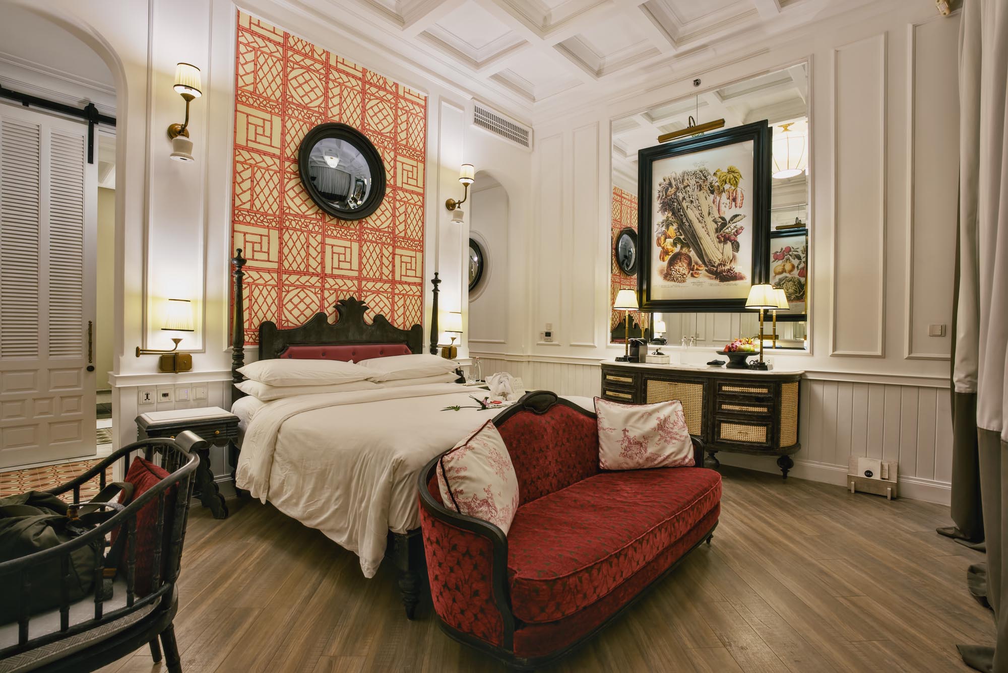 部屋は東洋とヨーロッパの美が融合したフレンチコロニアル様式で、地元のホイアン建築が色濃く反映されている。ベトナムにいながらも、エキゾチックな演出が漂い、旅の充実度が加速する。