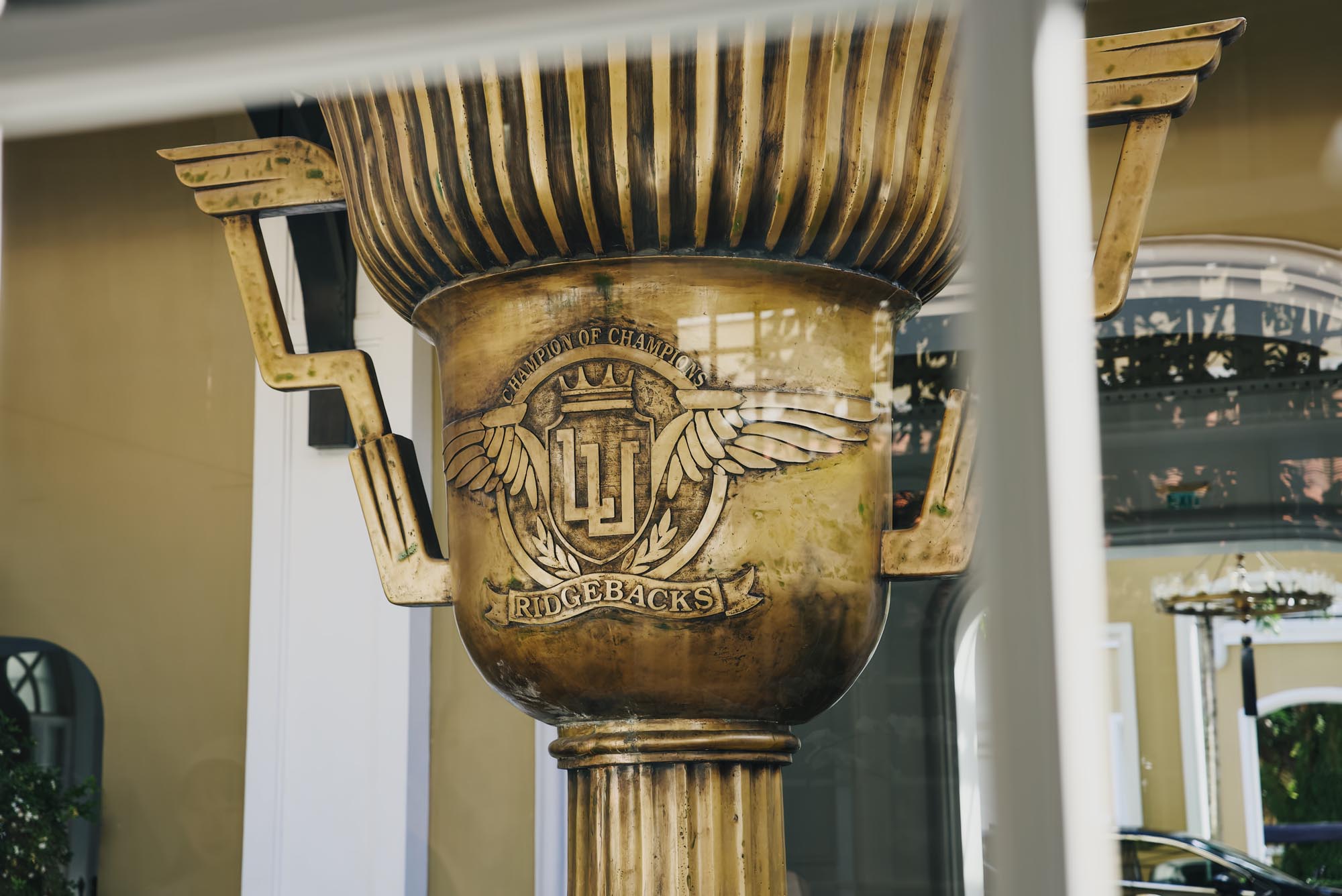 まず、ロビーに入って我々を迎えてくれるのは、ラグビーのチャンピオンシップで獲得した巨大な優勝トロフィーだ。これは1929年の試合で獲得したトロフィーで、学部長によって噴水として姿を変えられて今に至る。