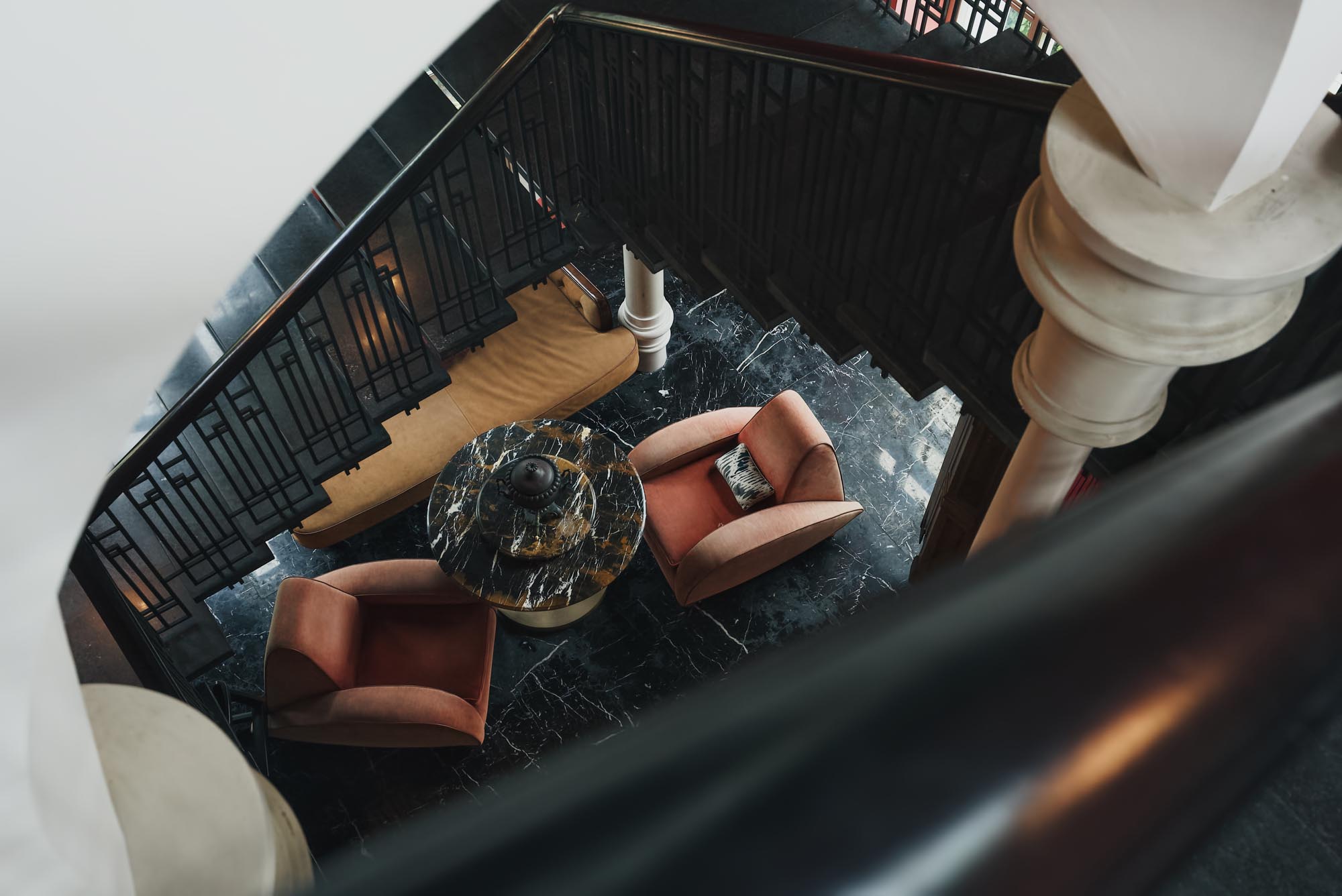 チェックインのためにフロントに入ると、天井高の美しい図書館が広がっていた。ここは1500冊以上の蔵書を有する「Dean’s Library」、そして学部長の書斎だ。世界中から集められた工芸品とともに、生物学や天文学に関する書籍が並ぶ。