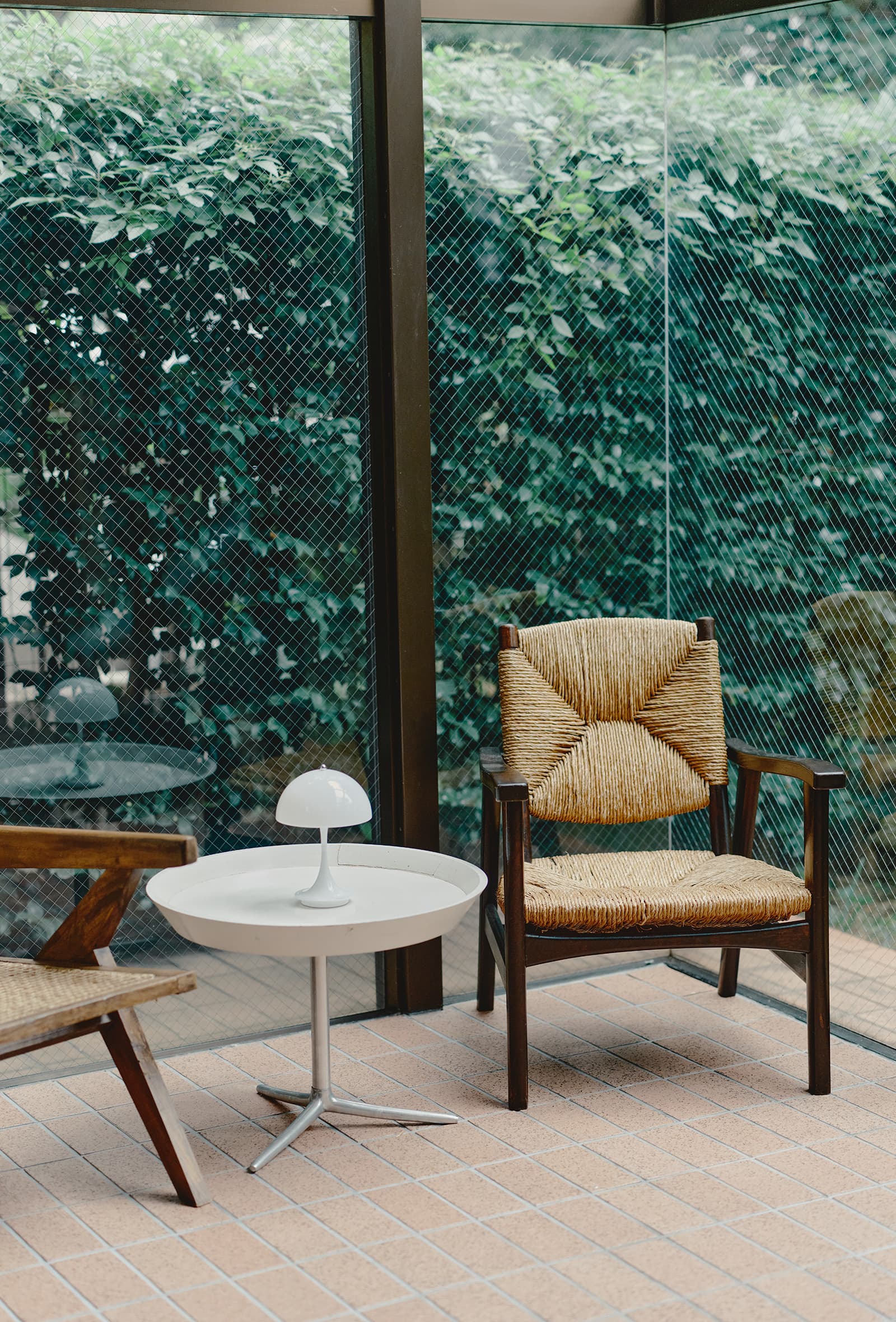 食器や籠もたくさんあるし、サンルームには松本の民藝の椅子がジャンヌレと並んでいたり。リビングのLAのダイニングテーブルの上にあるのは、京都で購入したピーター・アイビーの照明です。アイテムを綺麗に整えすぎるのが苦手だから、ミックスすることでほどよいぬけ感が出せるのかもしれません。生活感は出さないようにしつつも、いい意味で綺麗すぎない空間を意識しています。