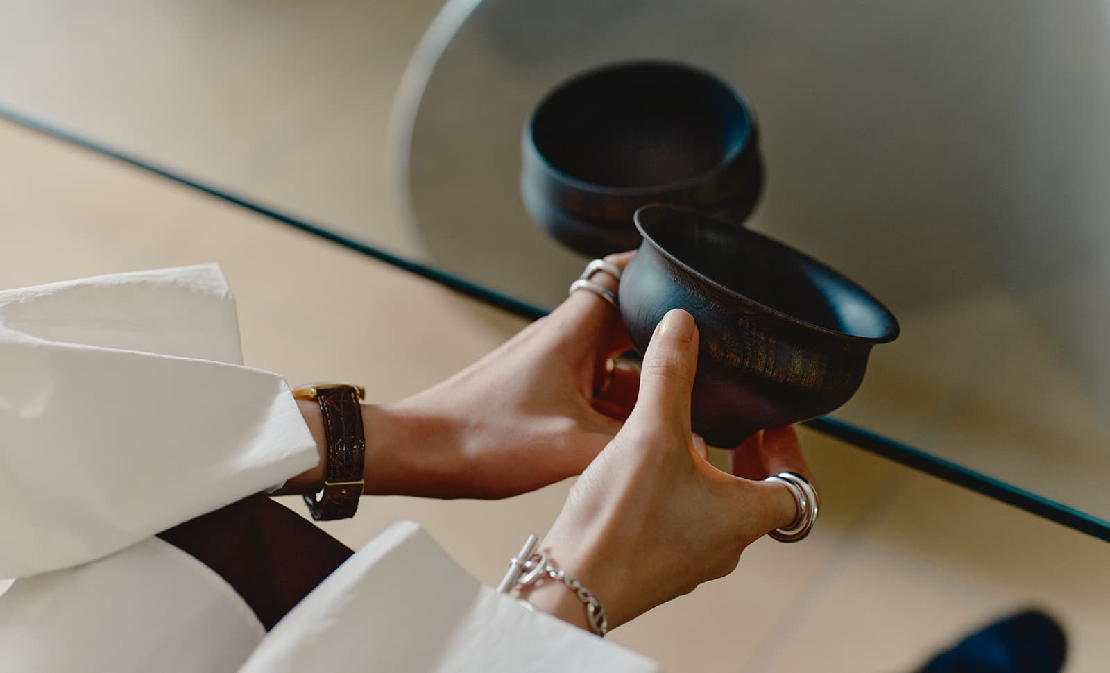 北海道の「坐忘林」で出合い、一目惚れしたという「我戸幹男商店」の木製のお碗「TSUMUGI」(¥5,500 / 税込)。