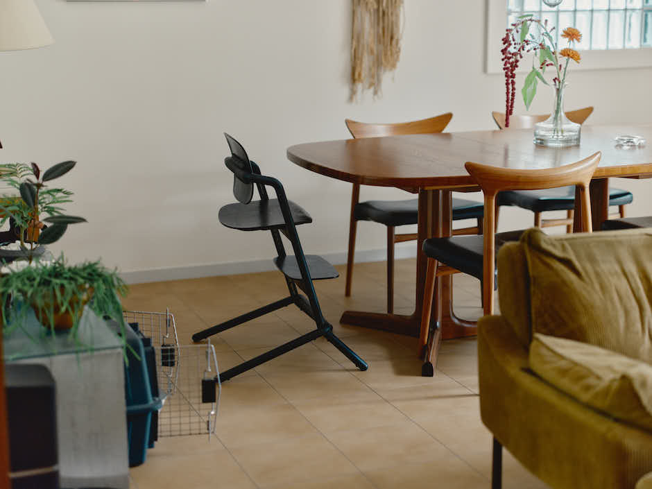 キッズチェアや愛犬のケージもインテリアに馴染ませて。