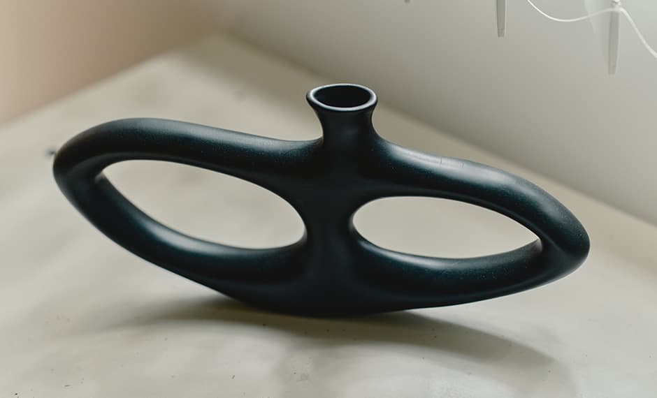 フォルムが気に入って購入したというオブジェ。もともと黄色だったため、部屋との相性を考えてスプレーで黒く塗り直した。