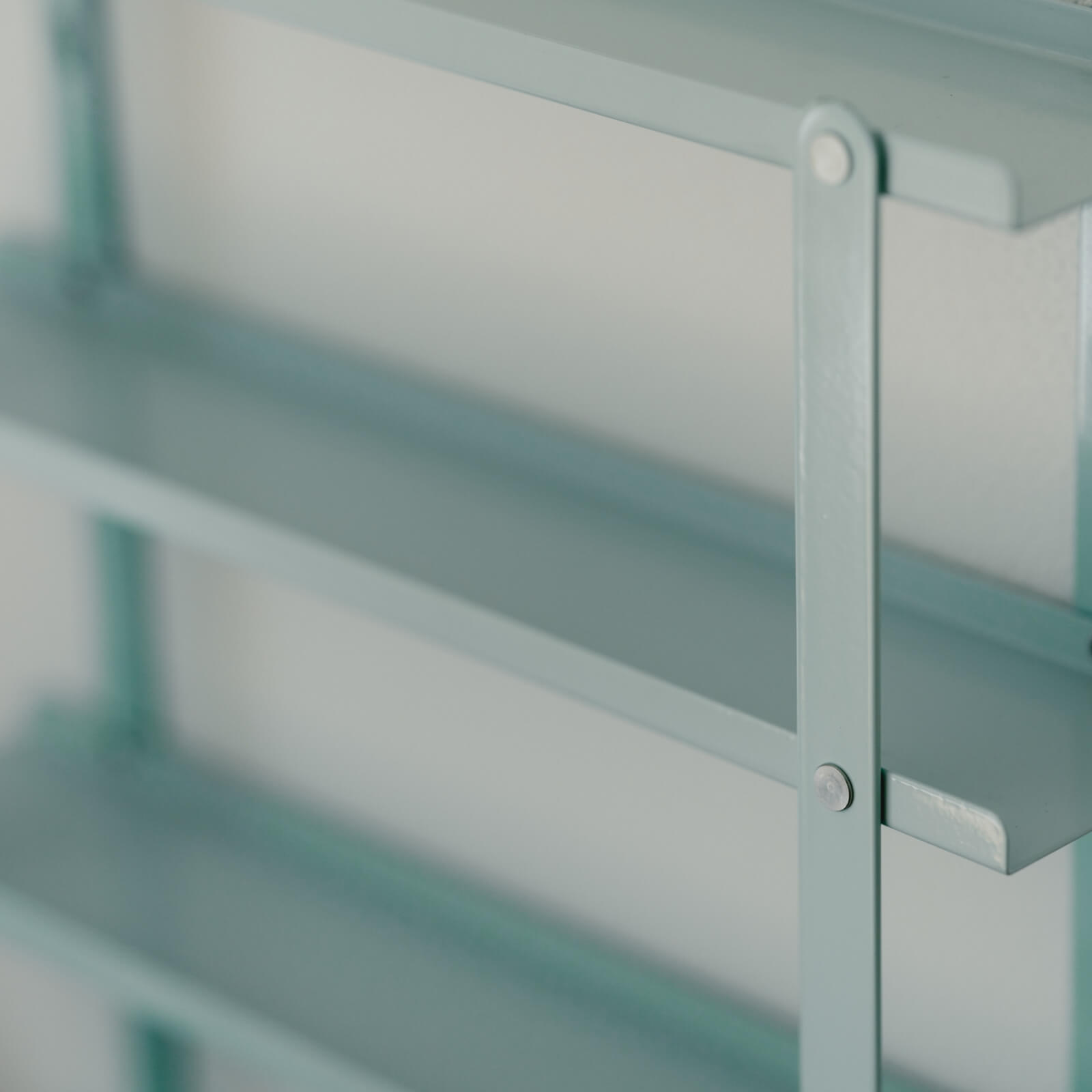 アイデアが煮詰まったら、窓の外の景色を眺めてみる。それでもダメならデスクに戻って無意味なオブジェを手に取ってみる。そんなインスピレーションのお供に、ミントカラーが爽やかな多目的シェルフ「BACHECA SHELF」。本来壁にとめて使うものを、ここでは置き型にアレンジしてみました。ちょっとした小物やお気に入りのオブジェを置いてみれば、デスクがクリエイティブな空間に様変わり。