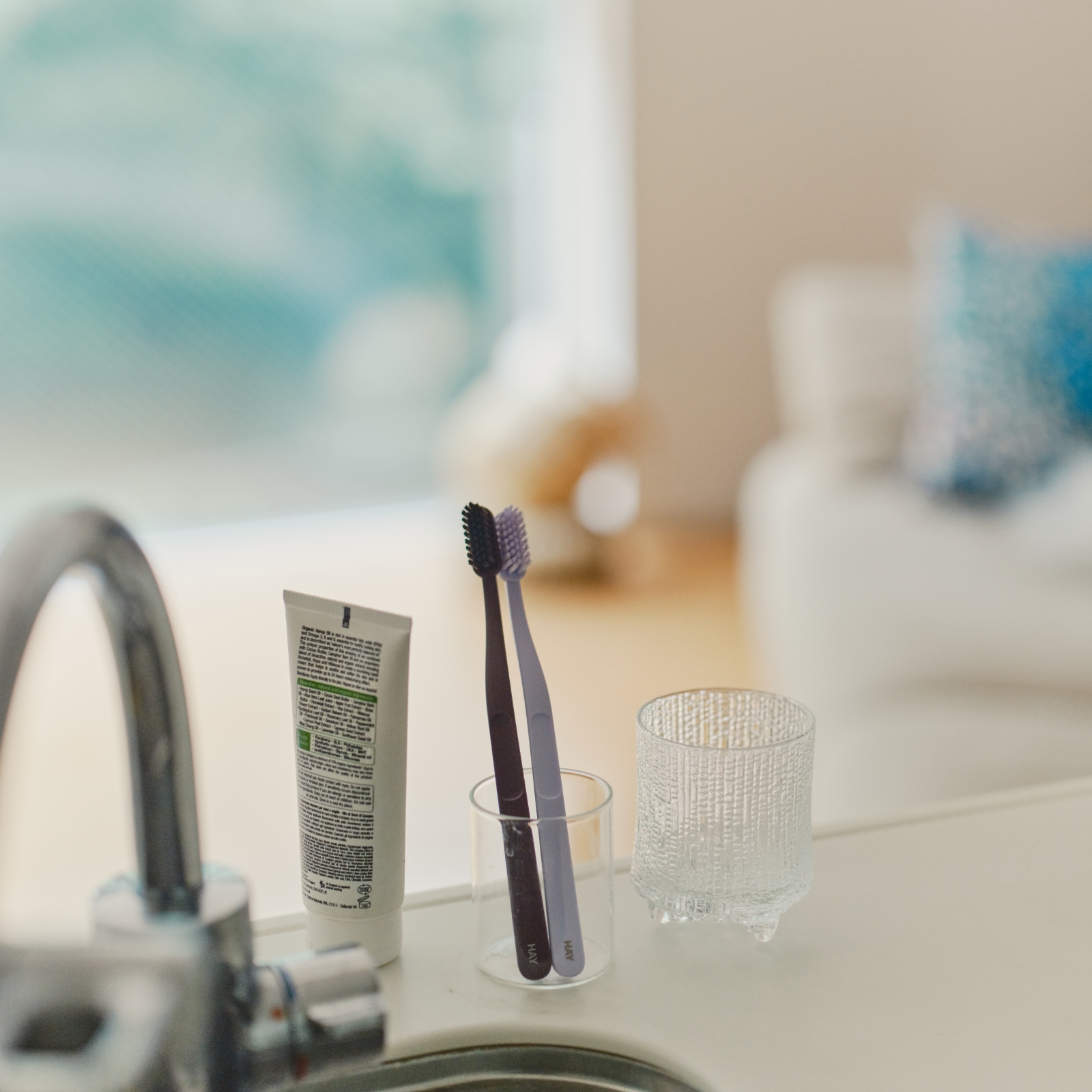 目覚めてすぐのルーティンに、優しい色を。ホテルライクで美しいカラーバリエーションの歯ブラシ「TANN」は、歯のケアの専門家であるJordan社とのコラボアイテム。お気に入りのカップとともに洗面に置いておくだけで、清々しい朝を迎えることができます。